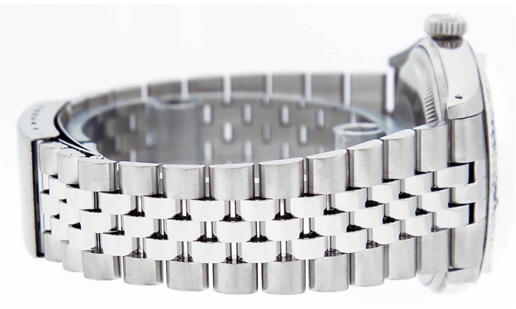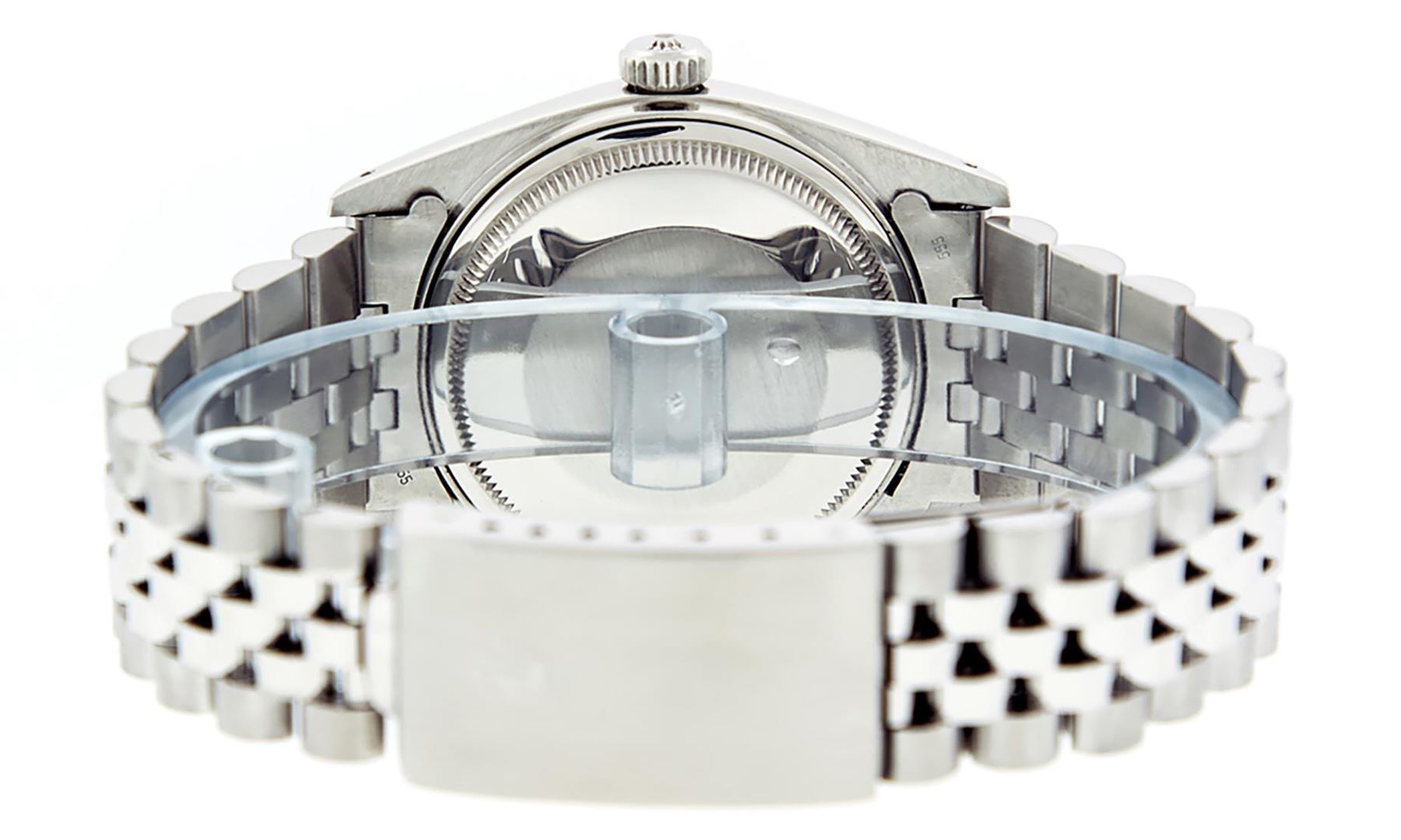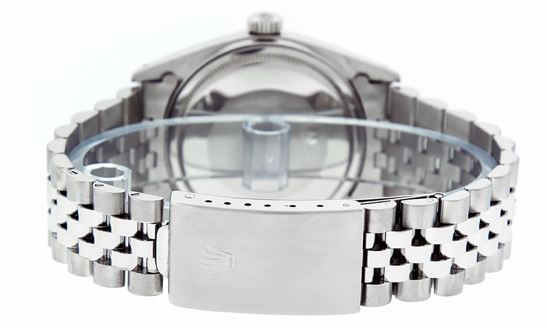 One Mens Stainless Steel Pre Owned Rolex Datejust Polished Bright with Satin Finish, This Watch Has Been Serviced & Electronically Tested, Rolex Stainless Steel Case: 36mm, Rolex Stainless Steel Crown, Rolex Bezel: 14K White Gold Fluted Bezel. Custom Crystal: New Acrylic Cyclops Lens. Custom Hands: New Luminescent Hands. Rolex Movement: Automatic Winding Movement. Custom Dial: Refinished To Gray With Custom Added Genuine Diamonds, Diamond Count: 8 Diamonds + 2 Baguettes in Dial G To H In Color, SI-VS Clarity. Date Window: 3 O'Clock Position Date Display, Quickset, Model: Datejust, Condition: G-6 Extra Fine. Rolex Bracelet: Stainless Steel Jubilee Band. Bright Polish & Satin Finish. 7.0 Inch Length, Adjustable. Standard Clasp, With Rolex Logo. This Watch Has Been Serviced Time Tested And Is In Excellent Condition It Is Free Of All Scratches And Dents.