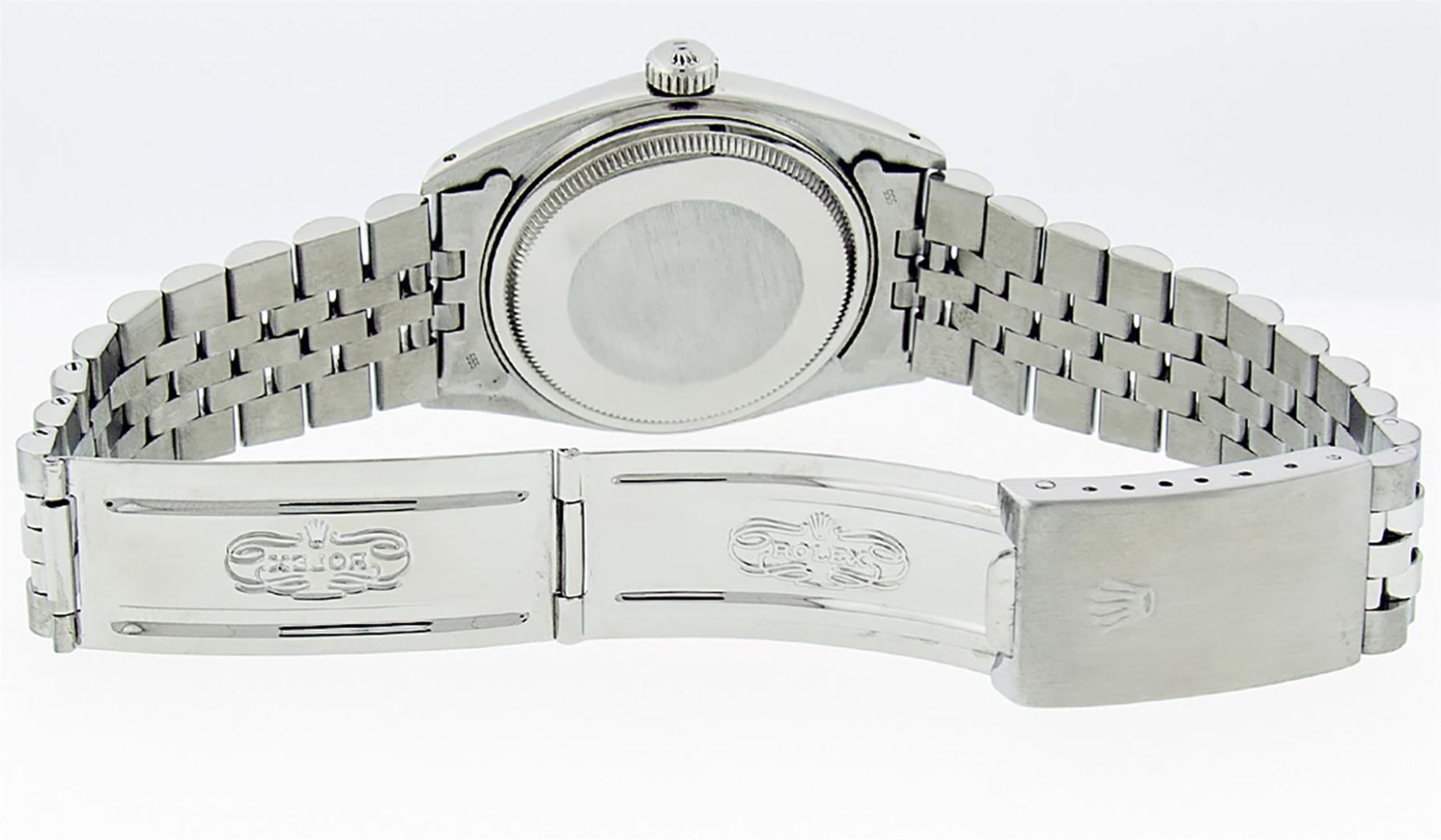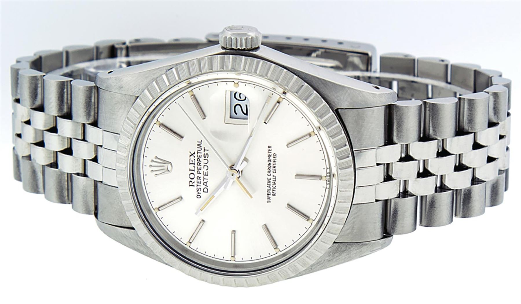 One Mens Pre Owned Stainless Steel Rolex Datejust Polished, Serviced & Electronically Tested, Rolex Stainless Steel Case: 36mm, Stainless Steel Crown, Rolex Bezel: Stainless Steel Engine Turn Bezel. Custom Crystal: Acrylic With Date Window. Hands: Luminescent Hands. Rolex Movement: Automatic Winding Movement 3035. Rolex Dial: Silver Index With Dash Track And Lumi Dots. Date Window: 3 O'Clock Position Date Display, Quickset, Model: Datejust, Condition: G-6 Extra Fine. Rolex Bracelet: Stainless Steel Jubilee Band. Bright Polish & Satin Finish. 7.0 Inch Length, Adjustable. Standard Clasp, With Rolex Logo. This Watch Has Been Serviced Time Tested And Is In Excellent Condition It Is Free Of All Scratches And Dents.