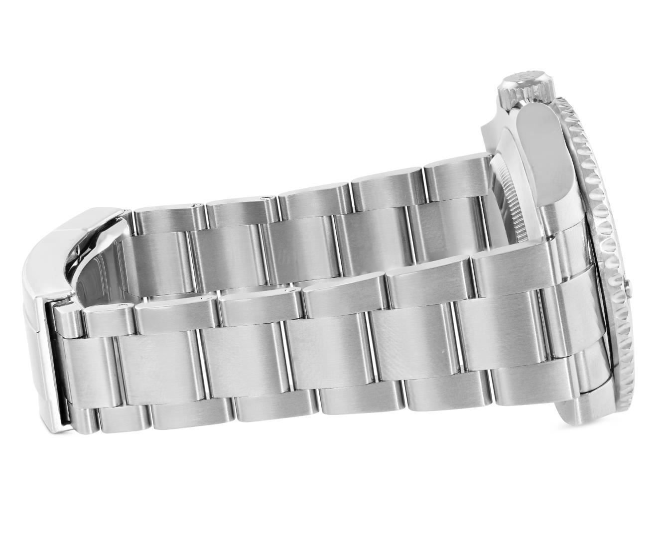 One Mens Pre Owned Rolex Stainless Steel Submariner With Date Polished, Serviced And Electronically Tested, Rolex Stainless Steel Case: 40mm, Rolex Stainless Steel Crown, Rolex Bezel: Stainless Steel Rotatable Bezel With Ceramic Green Insert. Crystal: Sapphire With Magnified Date Window. Rolex Movement: Automatic Winding Movement Caliber 3135. Rolex Dial: Green Submariner Dial with Luminous Index Hour Markers And Dash Track. Date Window: 3 O'Clock Position Date Display, Model: Date Submariner, Quickset, Condition: G-6 Extra Fine. Rolex Bracelet: Stainless Steel Oyster Band. Bright Polish And Satin Finish. 7.0 Inch Length, Adjustable. Standard Clasp, With Rolex Logo. This Watch Comes With A Rolex Box And Card.