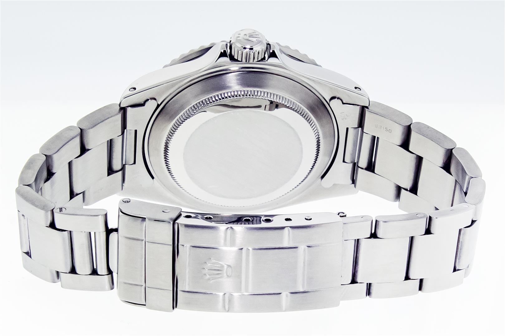 One Mens Pre Owned Rolex Submariner With Date Polished, Serviced & Electronically Tested, Rolex Stainless Steel Case: 40mm, Rolex Stainless Steel Crown, Rolex Bezel: Stainless Steel Rotatable Bezel With Black Insert. Crystal: Sapphire With Magnified Date Window. Rolex Movement: Automatic Winding Movement Caliber 3135. Rolex Dial: Black Submariner Dial with Luminous Index Hour Markers And Dash Track. Date Window: 3 O'Clock Position Date Display, Model: Date Submariner, Quickset, Condition: G-6 Extra Fine. Rolex Bracelet: Stainless Steel Oyster Band. Bright Polish & Satin Finish. 7.0 Inch Length, Adjustable. Standard Clasp, With Rolex Logo.