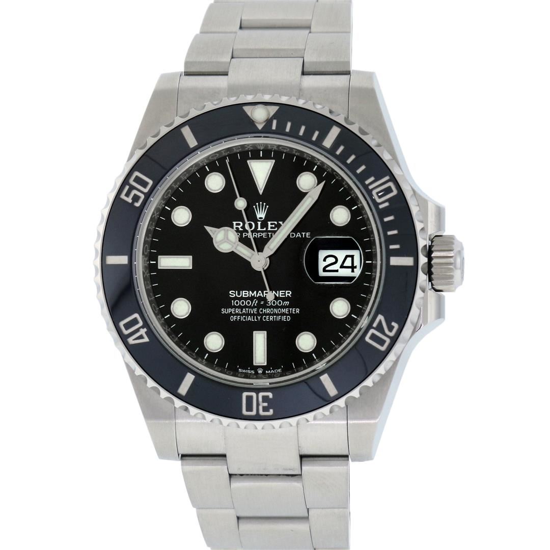 One Mens Pre Owned Ceramic Rolex Submariner With Date Polished, Serviced & Electronically Tested, Rolex Stainless Steel Case: 41mm, Rolex Stainless Steel Crown, Rolex Bezel: Stainless Steel Rotatable Bezel With Black Ceramic Insert. Rolex Crystal: Sapphire With Magnified Date Window. Rolex Movement: Automatic Winding Movement Caliber 3235. Rolex Dial: Rolex Black Submariner Dial with Luminous Index Hour Markers. Date Window: 3 O'Clock Position Date Display, Model: Ceramic Submariner, Quickset, Condition: G-6 Extra Fine. Rolex Bracelet: Stainless Steel Oyster Band. Bright Polish & Satin Finish. 7.25 Inch Length, Adjustable. Standard Clasp, With Rolex Logo. This Watch Has Been Serviced Time Tested And Is In Excellent Condition It Is Free Of All Scratches And Dents. This Watch Comes With A Rolex Box, Rolex Papers, And Rolex Booklet.