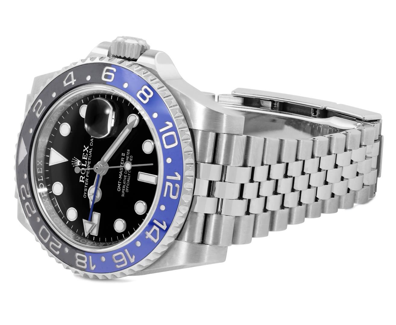 One Mens Pre Owned Rolex Stainless Steel GMT Master 2 Polished, Serviced And Electronically Tested, Rolex Stainless Steel Case: 40mm, Rolex Stainless Steel Crown, Rolex Bezel: Stainless Steel Bi Directional Rotatable Bezel With Blue And Black Insert. Rolex Crystal: Sapphire Crystal With Magnified Date Window. Rolex Movement: Automatic Winding Movement Caliber 3285. Dial: Black Dial. Functions: Quickset, GMT Hand. Date Window: 3 O'Clock Position Date Display, Model: GMT Master 2, Quickset, Condition: G-6 Extra Fine. Rolex Bracelet: Stainless Steel Jubilee Band. Bright Polish And Satin Finish. 7.25 Inch Length, Adjustable. Standard Clasp, With Rolex Logo. This Watch Has Been Serviced Time Tested And Is In Excellent Condition It Is Free Of All Scratches And Dents. This Watch Comes With A Rolex Box And Card.