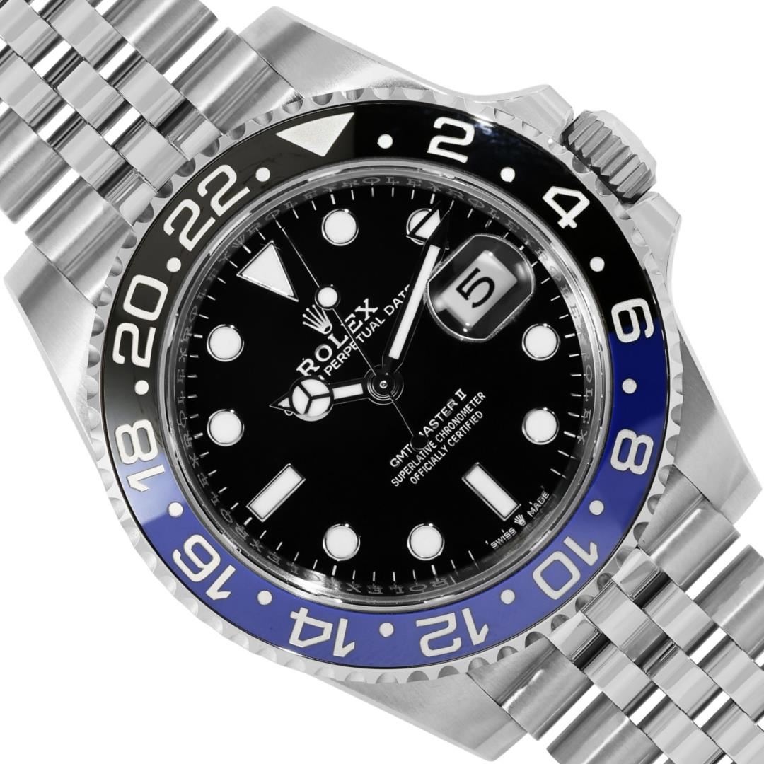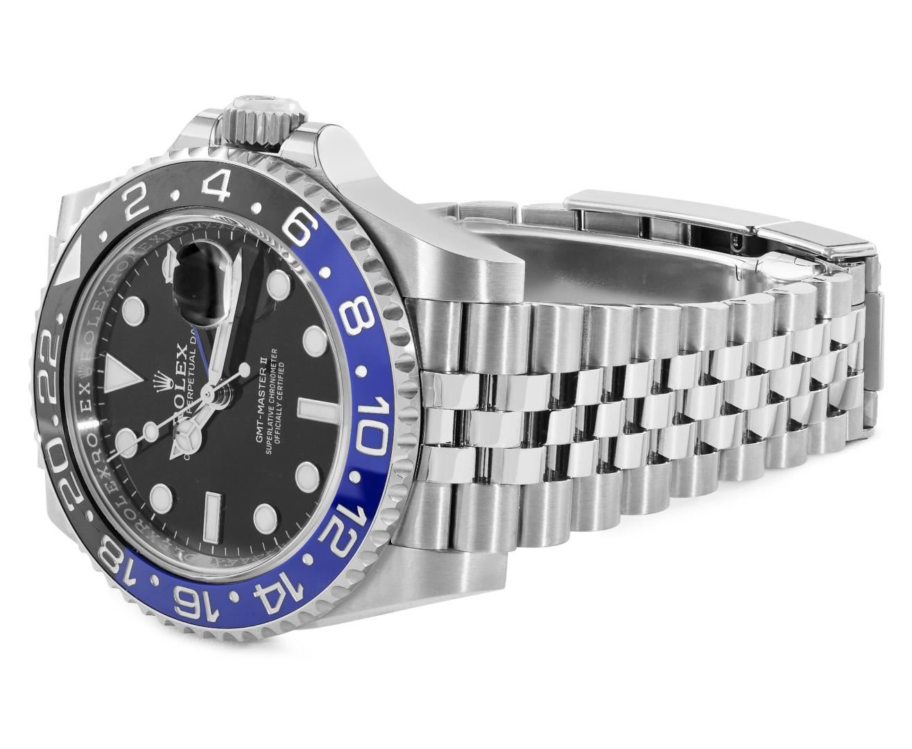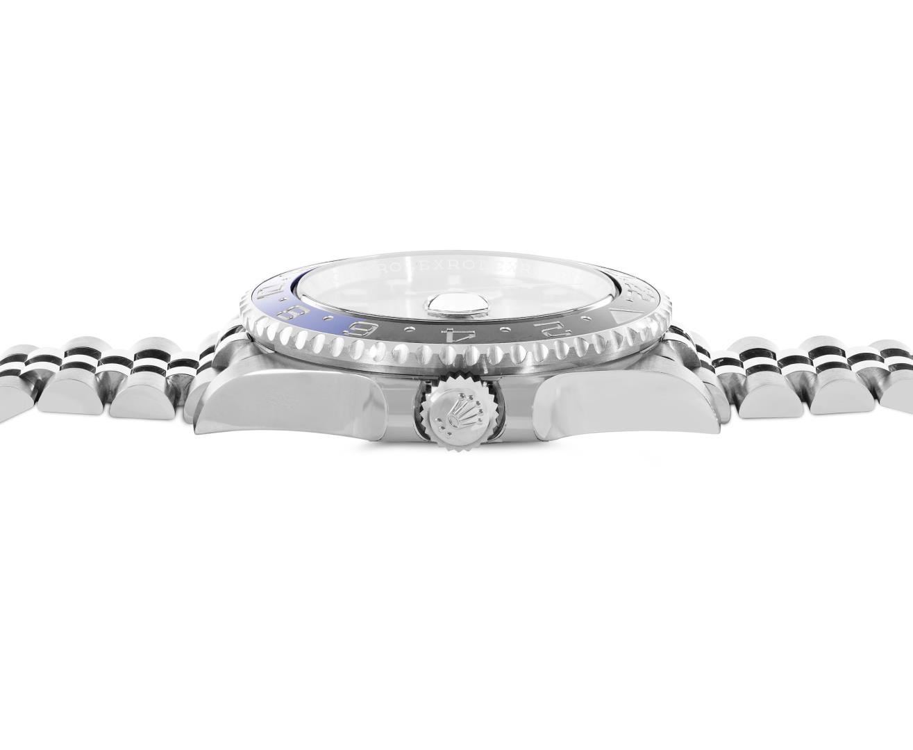 One Mens Pre Owned Rolex Stainless Steel GMT Master 2 Polished, Serviced And Electronically Tested, Rolex Stainless Steel Case: 40mm, Rolex Stainless Steel Crown, Rolex Bezel: Stainless Steel Bi Directional Rotatable Bezel With Blue And Black Insert. Rolex Crystal: Sapphire Crystal With Magnified Date Window. Rolex Movement: Automatic Winding Movement Caliber 3285. Dial: Black Dial. Functions: Quickset, GMT Hand. Date Window: 3 O'Clock Position Date Display, Model: GMT Master 2, Quickset, Condition: G-6 Extra Fine. Rolex Bracelet: Stainless Steel Jubilee Band. Bright Polish And Satin Finish. 7.25 Inch Length, Adjustable. Standard Clasp, With Rolex Logo. This Watch Has Been Serviced Time Tested And Is In Excellent Condition It Is Free Of All Scratches And Dents. This Watch Comes With A Rolex Box And Card.