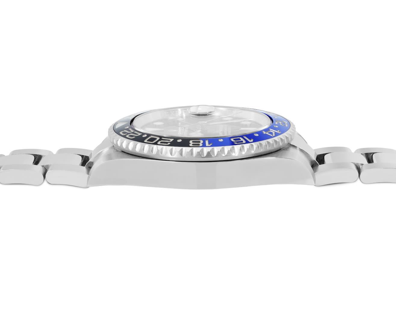 One Mens Pre Owned Rolex Stainless Steel GMT Master 2 Polished, Serviced And Electronically Tested, Rolex Stainless Steel Case: 40mm, Rolex Stainless Steel Crown, Rolex Bezel: Stainless Steel Bi Directional Rotatable Bezel With Blue And Black Insert. Rolex Crystal: Sapphire Crystal With Magnified Date Window. Rolex Movement: Automatic Winding Movement Caliber 3186. Dial: Black Dial. Functions: GMT Hand, Quickset. Date Window: 3 O'Clock Position Date Display, Model: GMT Master 2, Quickset, Condition: G-6 Extra Fine. Rolex Bracelet: Stainless Steel Oyster Band. Bright Polish And Satin Finish. 7.25 Inch Length, Adjustable. Standard Clasp, With Rolex Logo. This Watch Has Been Serviced Time Tested And Is In Excellent Condition It Is Free Of All Scratches And Dents. This Watch Comes With A Rolex Box And Card.