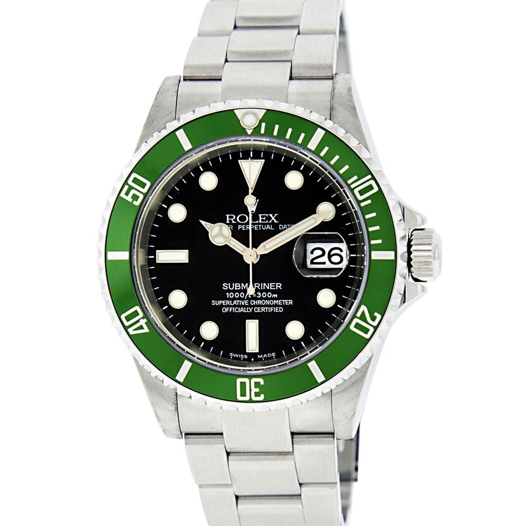 One Mens Pre Owned Rolex Anniversary Edition Stainless Steel Submariner "Kermit" With Date Polished, Serviced & Electronically Tested, Rolex Stainless Steel Case: 40mm, Rolex Stainless Steel Crown, Rolex Bezel: Stainless Steel Rotatable Bezel With Green I
