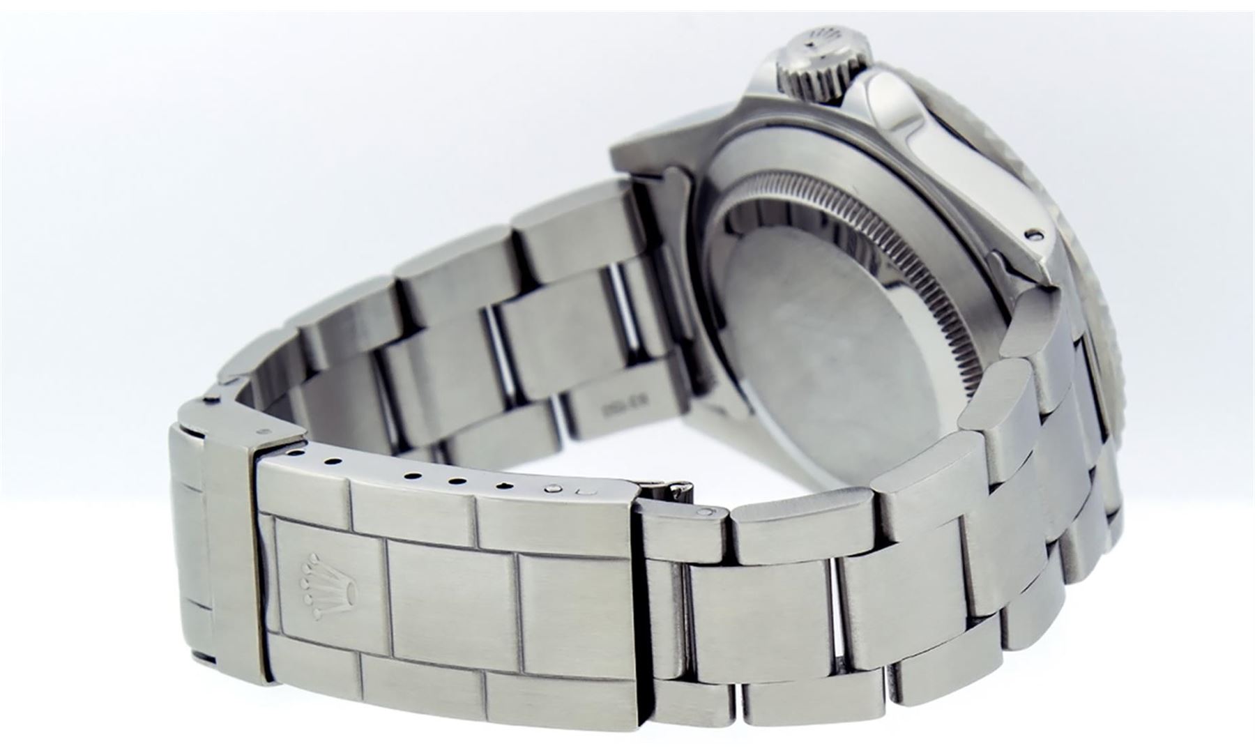 One Mens Pre Owned Rolex Stainless Steel Submariner With Date Polished, Serviced & Electronically Tested, Rolex Stainless Steel Case: 40mm, Rolex Stainless Steel Crown, Rolex Bezel: Stainless Steel Rotatable Bezel With Black Insert. Crystal: Sapphire With Magnified Date Window. Rolex Movement: Automatic Winding Movement Caliber 3135. Rolex Dial: Black Submariner Dial, Hands: Submariner Hands. Date Window: 3 O'Clock Position Date Display, Model: Submariner, Quickset, Condition: G-6 Extra Fine. Rolex Bracelet: Stainless Steel Oyster Band. Bright Polish & Satin Finish. 7.0 Inch Length, Adjustable. Standard Clasp, With Rolex Logo.