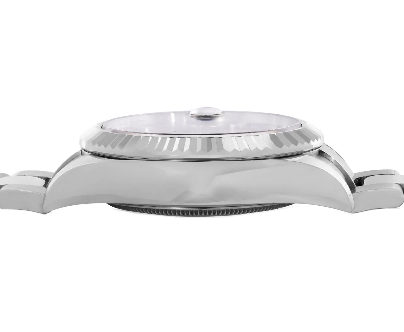 One Mens Pre Owned Stainless Steel Rolex Sky Dweller With Date Polished, Serviced And Electronically Tested, Rolex Stainless Steel Case: 42mm, Rolex Stainless Steel Crown, Rolex Bezel: 18K White Gold Rotatable Fluted Bezel. Rolex Crystal: Sapphire With Magnified Date Window. Rolex Movement: Automatic Winding Movement Caliber 9001. Rolex Dial: Rolex Blue Sky Dweller Dial with Luminous Index Hour Markers. Date Window: 3 O'Clock Position Date Display, Model: Sky Dweller, Functions: Quickset, Month Calendar Feature, Dual Time. Condition: G-6 Extra Fine. Rolex Bracelet: Stainless Steel Oyster Band. Bright Polish And Satin Finish. 7.25 Inch Length, Adjustable. Standard Clasp, With Rolex Logo. This Watch Has Been Serviced Time Tested And Is In Excellent Condition It Is Free Of All Scratches And Dents. This Watch Comes With Rolex Box And Papers.