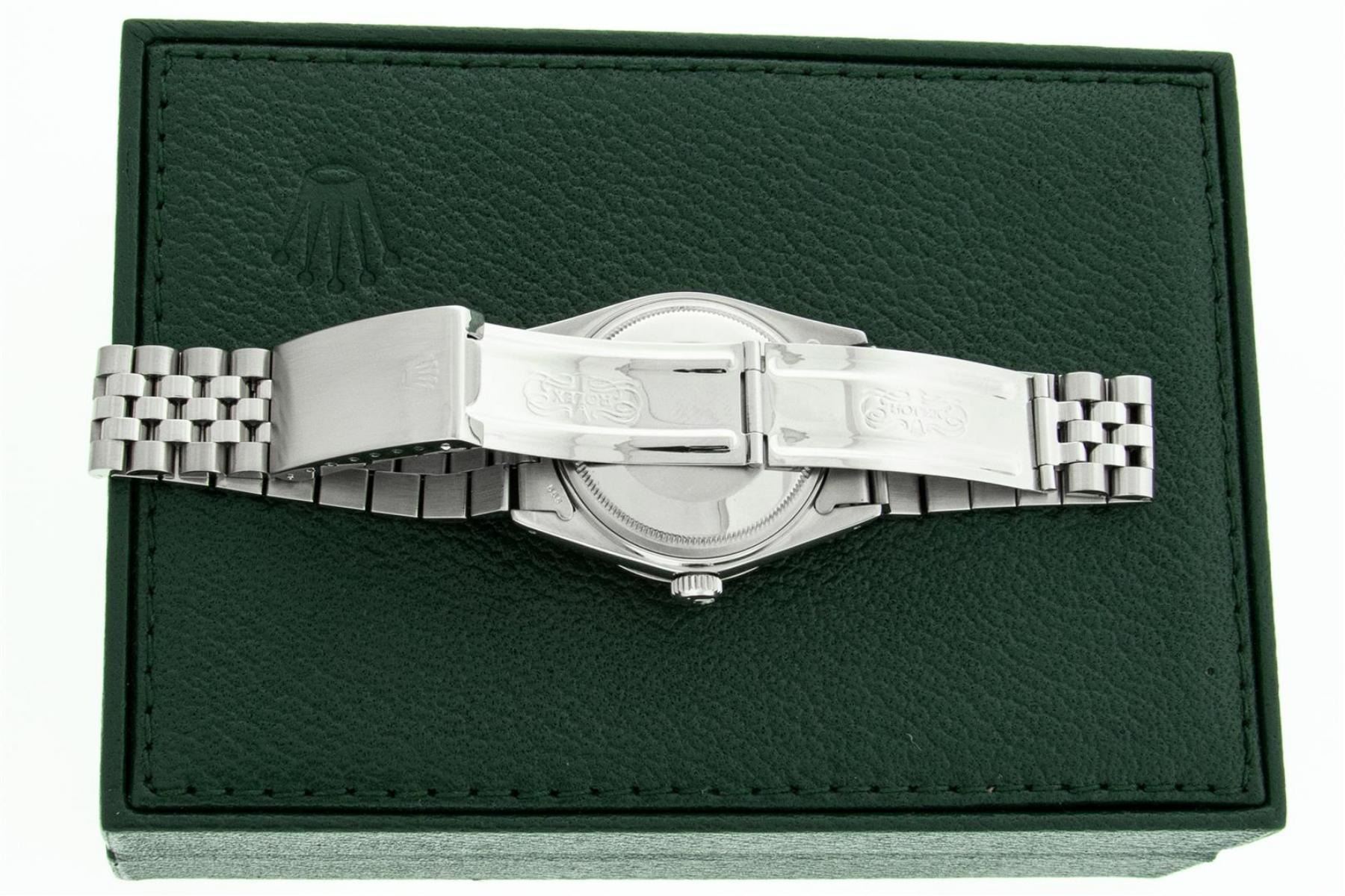 One Mens Rolex Stainless Steel Datejust Polished Bright with Satin Finish, This Watch Has Been Serviced & Electronically Tested, Stainless Steel Case: 36mm, Stainless Steel Crown, Custom Bezel: New Stainless Steel Beadset Diamond Bezel, Diamond Count: 54 Diamonds In Bezel, Total Weight 1.00 Carat, Clarity: SI-VS, Color: G to H. Custom Crystal: New Synthetic Sapphire Cyclops Lens. Custom Hands: New Luminescent Hands. Movement: Automatic Winding Movement. Custom Dial: Red String Diamond Dial, Diamond Count: 58 Diamonds In Dial, Color: G to H, Clarity: VS2-SI1. Date Window: 3 O'Clock Position Date Display, Quickset, Model: Datejust. Condition: G-6 Extra Fine. Bracelet: Stainless Steel Jubilee Band. Bright Polish & Satin Finish. 7.0 Inch Length, Adjustable. Standard Clasp, With Rolex Logo. This Watch Has Been Serviced Time Tested And Is In Excellent Condition It Is Free Of All Scratches And Dents.
