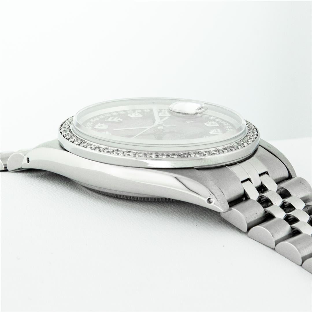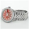 One Mens Rolex Stainless Steel Datejust Polished Bright with Satin Finish, This Watch Has Been Serviced & Electronically Tested, Stainless Steel Case: 36mm, Stainless Steel Crown, Custom Bezel: New Stainless Steel Beadset Diamond Bezel, Diamond Count: 54 Diamonds In Bezel, Total Weight 1.00 Carat, Clarity: SI-VS, Color: G to H. Custom Crystal: New Sapphire With Date Window. Custom Hands: New Luminescent Hands. Rolex Movement: Automatic Winding Movement. Custom Dial: Red String With Custom Added Diamonds, Diamond Count: 58 Diamonds In Dial, Color: G to H, Clarity: VS2-SI1. Date Window: 3 O'Clock Position Date Display, Quickset, Model: Datejust. Condition: G-6 Extra Fine. Rolex Bracelet: Stainless Steel Jubilee Band. Bright Polish & Satin Finish. 7.0 Inch Length, Adjustable. Standard Clasp, With Rolex Logo. This Pre Owned Watch Has Been Serviced Time Tested And Is In Excellent Condition It Is Free Of All Scratches And Dents.