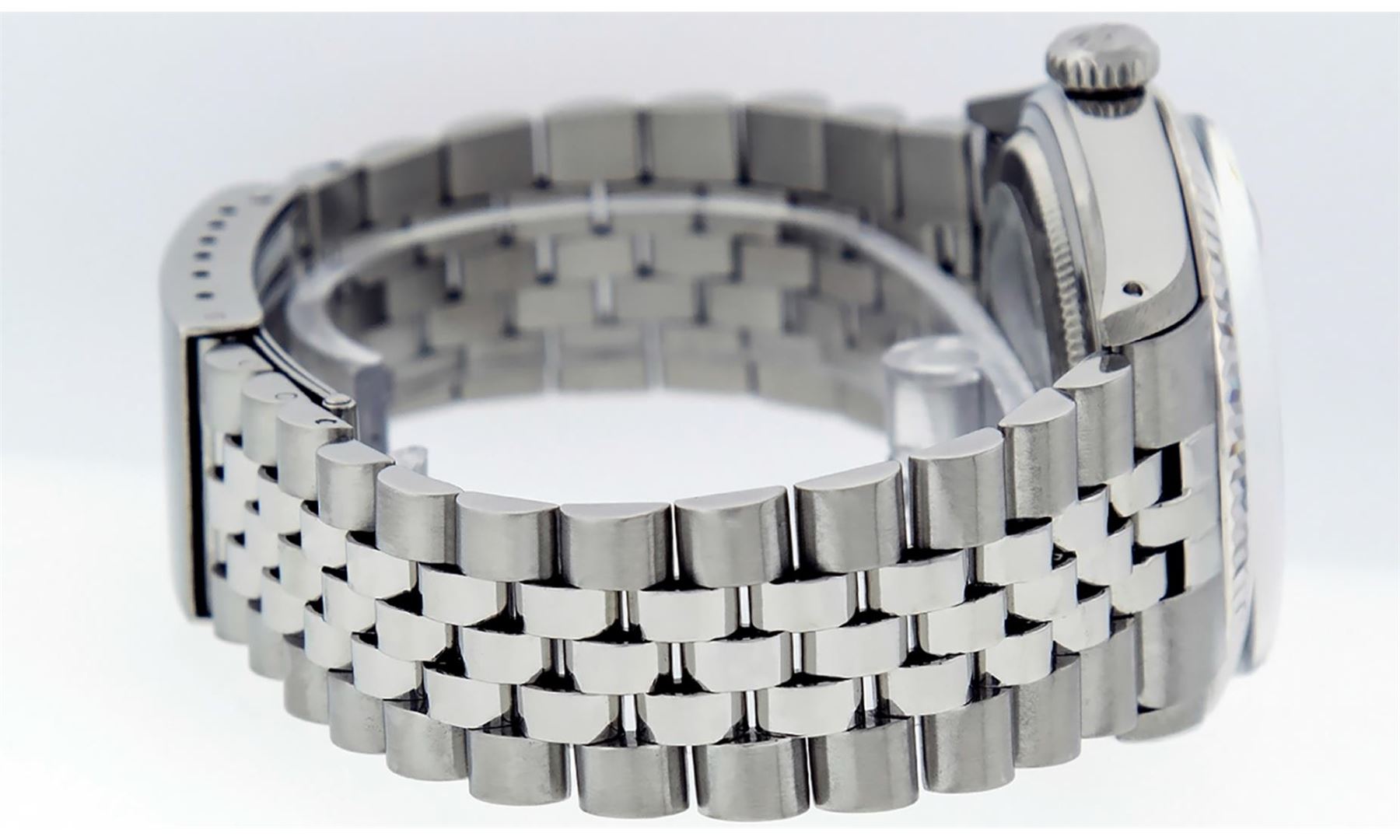 One Mens Pre Owned Stainless Steel Rolex Datejust Polished, Serviced & Electronically Tested, Rolex Stainless Steel Case: 36mm, Rolex Stainless Steel Crown, Rolex Bezel: 14K White Gold Fluted Bezel. Custom Crystal: New Acrylic With Date Window. Custom Hands: New Luminescent Hands. Rolex Movement: Automatic Winding Movement 3035. Rolex Dial: Silver Index With Dash Track And Lumi Dots. Date Window: 3 O'Clock Position Date Display, Quickset, Model: Datejust, Condition: G-6 Extra Fine. Rolex Bracelet: Stainless Steel Jubilee Band. Bright Polish & Satin Finish. 7.0 Inch Length, Adjustable. Standard Clasp, With Rolex Logo. This Watch Has Been Serviced Time Tested And Is In Excellent Condition It Is Free Of All Scratches And Dents.