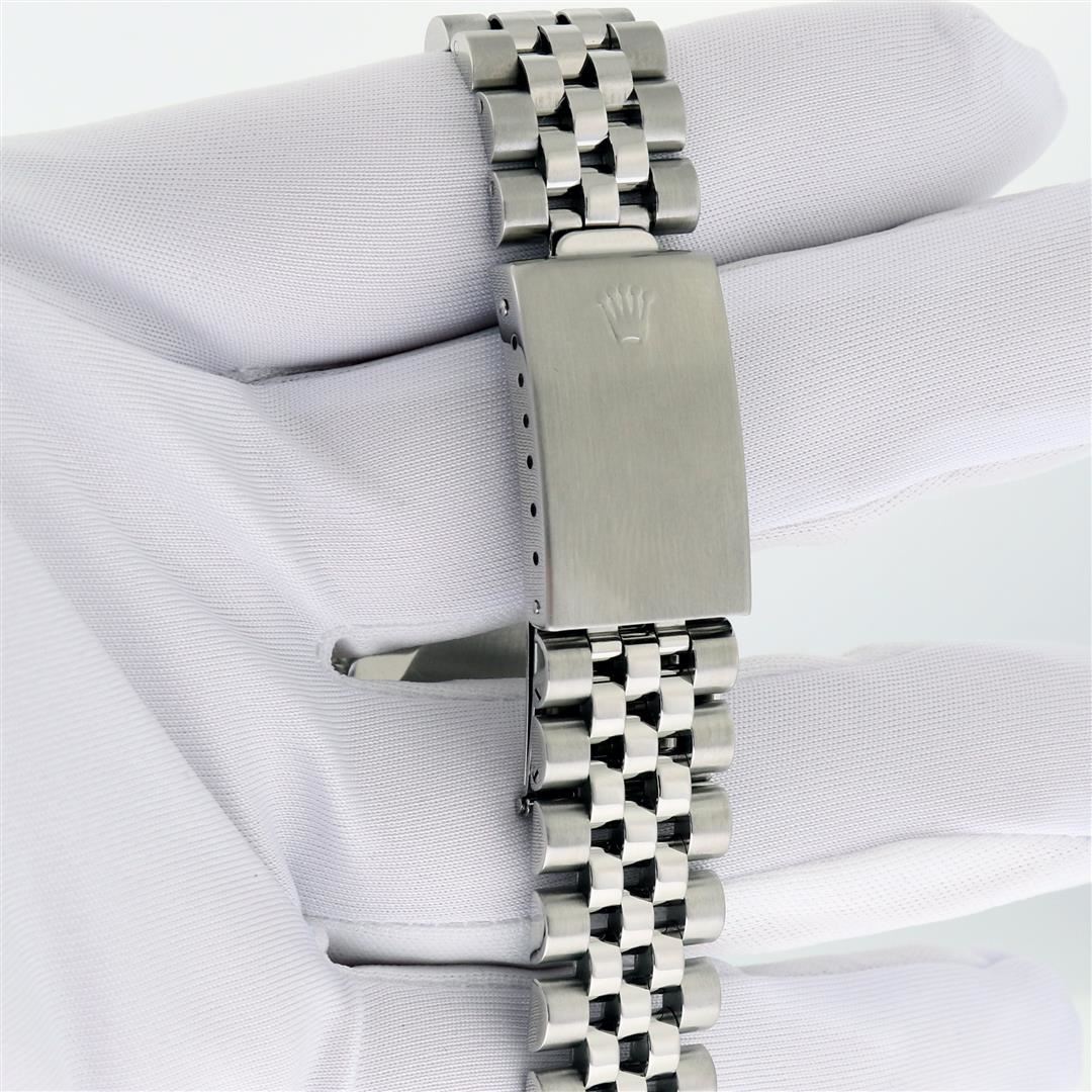 One Mens Pre Owned Rolex Datejust Polished Bright with Satin Finish, This Watch Has Been Serviced & Electronically Tested, Rolex Stainless Steel Case: 36mm, Rolex Stainless Steel Crown, Custom Bezel: New 18K White Gold Ruby Beadset Diamond Bezel, Diamond + Gem Count: 36 Diamonds + 4 Rubies, Clarity: SI-VS, Color: G to H. Custom Crystal: New Sapphire With Date Window. Custom Hands: New Luminescent Hands. Rolex Movement: Automatic Winding Movement. Rolex Dial: Silver Index Dial. Date Window: 3 O'Clock Position Date Display, Quickset, Model: Datejust, Condition: G-6 Extra Fine. Rolex Bracelet: Stainless Steel Jubilee Band. Bracelet: 7.0 Inch Length, Adjustable. Standard Clasp, With Rolex Logo. This Watch Has Been Serviced Time Tested And Is In Excellent Condition It Is Free Of All Scratches And Dents.