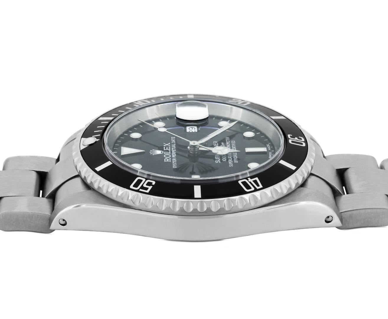 One Mens Pre Owned Stainless Steel Rolex Submariner With Date Polished, Serviced And Electronically Tested, Rolex Stainless Steel Case: 40mm, Rolex Stainless Steel Crown, Rolex Bezel: Stainless Steel Rotatable Bezel With Black Insert. Crystal: Sapphire With Magnified Date Window. Rolex Movement: Automatic Winding Movement Caliber 3135. Rolex Dial: Black Submariner Dial with Luminous Index Hour Markers And Dash Track. Date Window: 3 O'Clock Position Date Display, Model: Date Submariner, Quickset, Condition: G-6 Extra Fine. Rolex Bracelet: Stainless Steel Oyster Band. Bright Polish & Satin Finish. 7.0 Inch Length, Adjustable. Standard Clasp, With Rolex Logo. This Watch Comes With A Rolex Box.