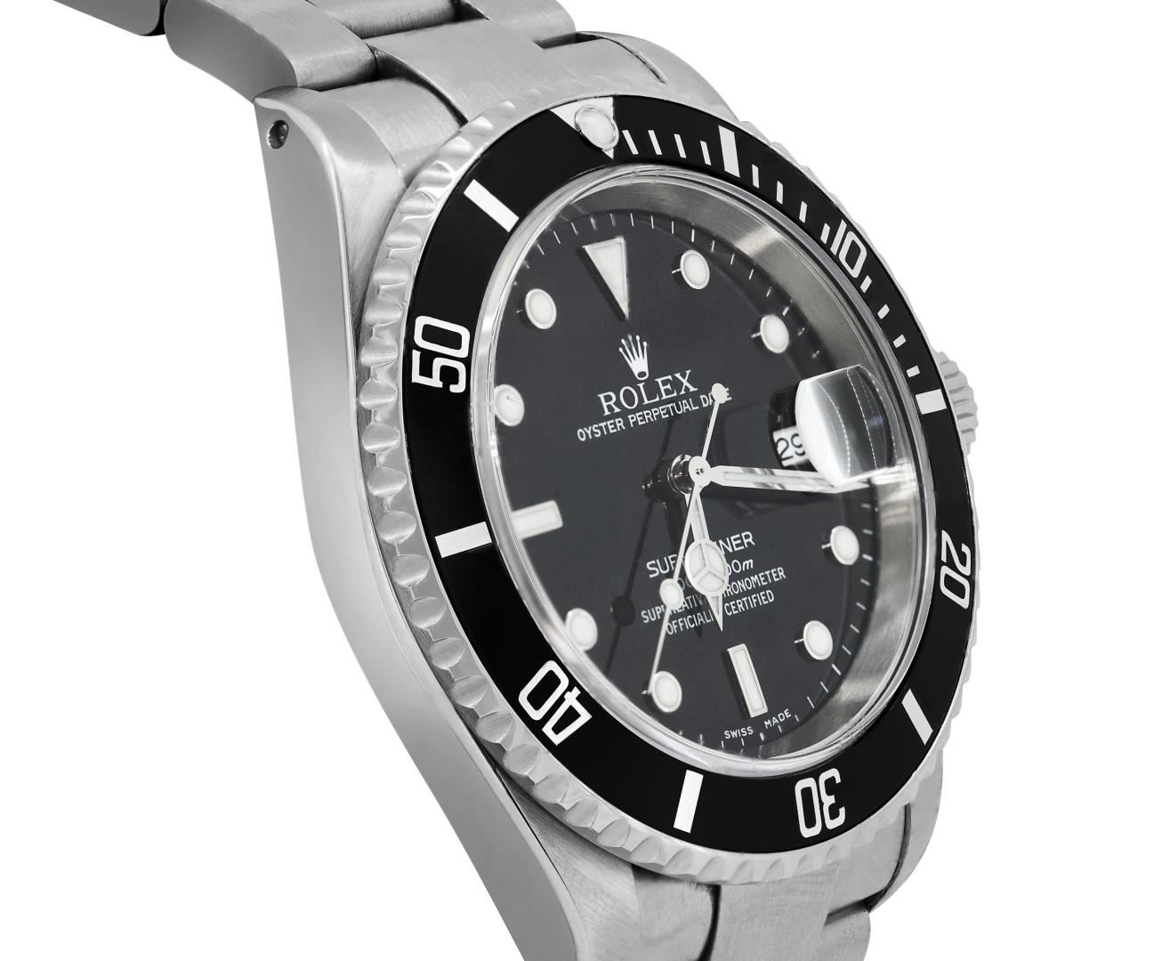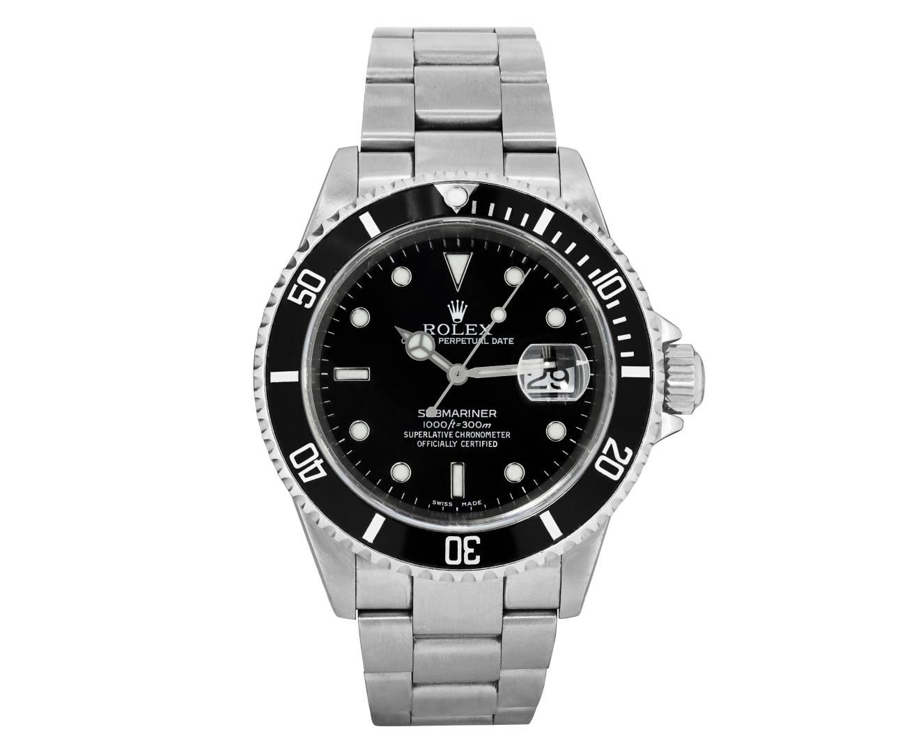 One Mens Pre Owned Stainless Steel Rolex Submariner With Date Polished, Serviced And Electronically Tested, Rolex Stainless Steel Case: 40mm, Rolex Stainless Steel Crown, Rolex Bezel: Stainless Steel Rotatable Bezel With Black Insert. Crystal: Sapphire With Magnified Date Window. Rolex Movement: Automatic Winding Movement Caliber 3135. Rolex Dial: Black Submariner Dial with Luminous Index Hour Markers And Dash Track. Date Window: 3 O'Clock Position Date Display, Model: Date Submariner, Quickset, Condition: G-6 Extra Fine. Rolex Bracelet: Stainless Steel Oyster Band. Bright Polish & Satin Finish. 7.0 Inch Length, Adjustable. Standard Clasp, With Rolex Logo. This Watch Comes With A Rolex Box.