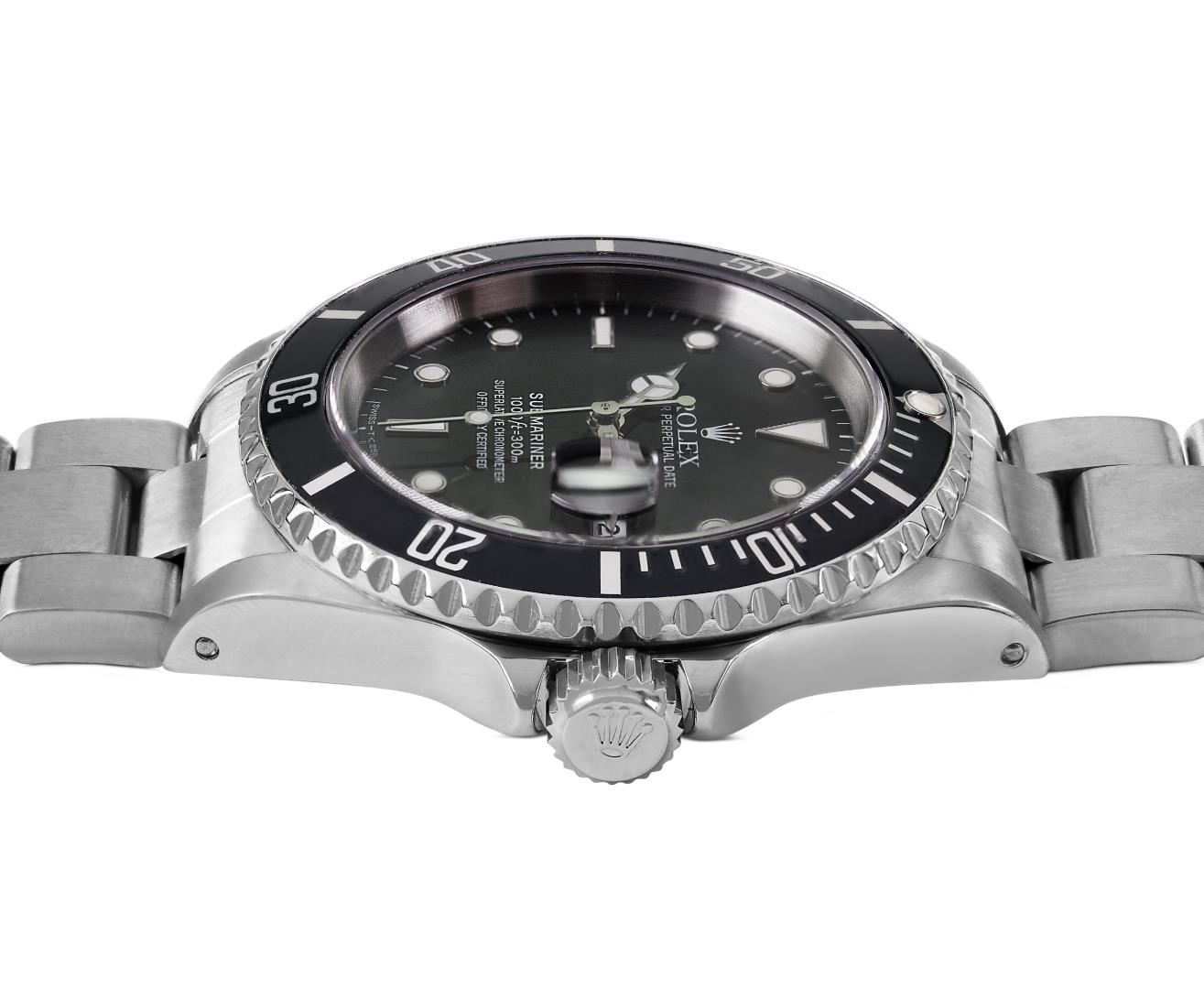 One Mens Pre Owned Stainless Rolex Submariner With Date Polished, Serviced & Electronically Tested, Rolex Stainless Steel Case: 40mm, Rolex Stainless Steel Crown, Rolex Bezel: Stainless Steel Rotatable Bezel With Black Insert. Crystal: Sapphire With Magnified Date Window. Rolex Movement: Automatic Winding Movement Caliber 3135. Rolex Dial: Black Submariner Dial with Luminous Index Hour Markers And Dash Track. Date Window: 3 O'Clock Position Date Display, Model: Date Submariner, Quickset, Condition: G-6 Extra Fine. Rolex Bracelet: Stainless Steel Oyster Band. Bright Polish & Satin Finish. 7.0 Inch Length, Adjustable. Fold Clasp, With Rolex Logo. This Watch Comes With A Rolex Box.