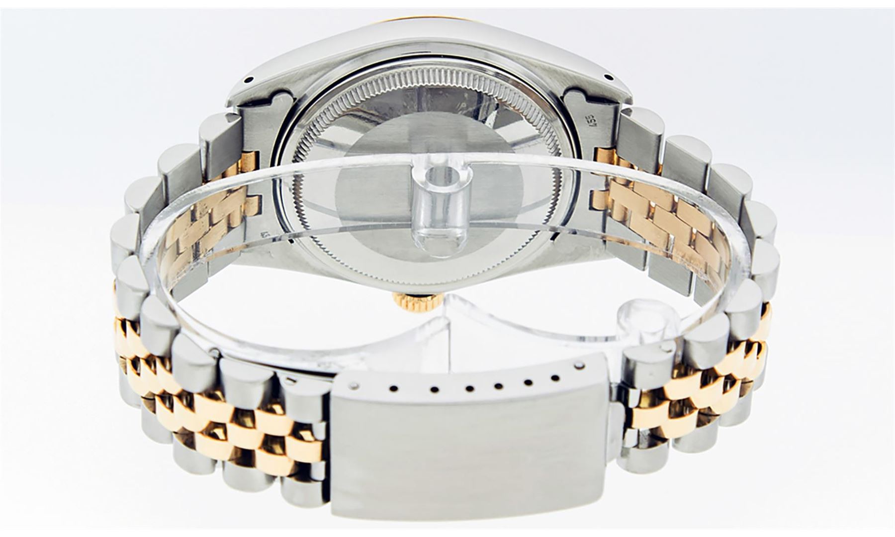 One Mens Yellow Gold Two Tone Rolex Datejust Polished, Serviced & Electronically Tested, Yellow Gold & Stainless Steel Case: 36mm, Yellow Gold Crown, Bezel: Yellow Gold Fluted Bezel. Custom Crystal: New Acrylic Cyclops Lens. Hands: Luminescent Hands. Move