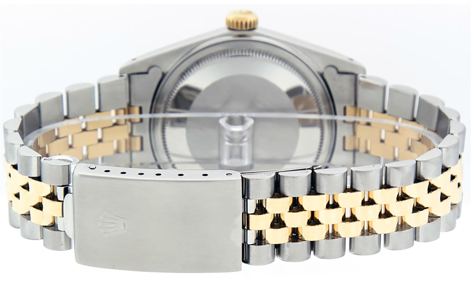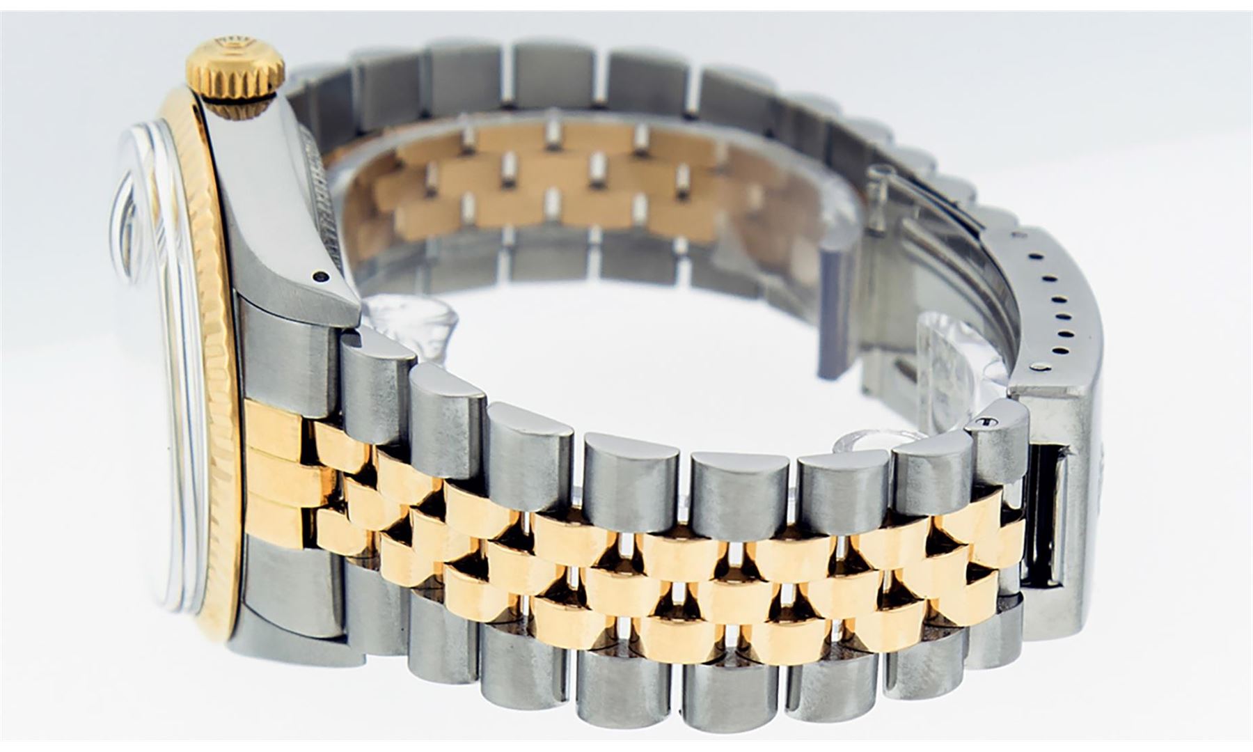 One Mens Yellow Gold Two Tone Rolex Datejust Polished, Serviced & Electronically Tested, Yellow Gold & Stainless Steel Case: 36mm, 14K Yellow Gold Crown, Bezel: Yellow Gold Fluted Bezel. Custom Crystal: New Acrylic Cyclops Lens. Hands: Luminescent Hands.