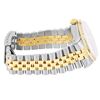 One Mens Pre Owned Two Tone Yellow Gold & Stainless Steel Rolex Datejust Polished, Serviced & Electronically Tested, Yellow Gold & Stainless Steel Case: 36mm, Rolex Yellow Gold Crown, Custom Bezel: New 18K Yellow Gold Emerald Beadset Diamond Bezel, Diamond Count: 36 Diamonds + 4 Emeralds, Clarity: SI-VS, Color: G to H. Custom Crystal: New Sapphire With Magnified Date Window. Custom Hands: New Lumi Hands. Rolex Movement: Automatic Winding Movement 3035. Rolex Factory Dial: Champagne Index Dial With Dash Track & Lumi Dots. Date Window: 3 O'Clock Position Date Display, Quickset, Model: Quickset Datejust. Condition: G-6 Extra Fine. Rolex Bracelet: Two Tone Yellow Gold & Stainless Steel Jubilee Band. Bright Polish. 7.0 Inch Length, Adjustable. Fold Clasp, With Rolex Logo. This Watch Has Been Serviced Time Tested And Is In Excellent Condition It Is Free Of All Scratches And Dents. This Watch Comes With A Rolex Box.