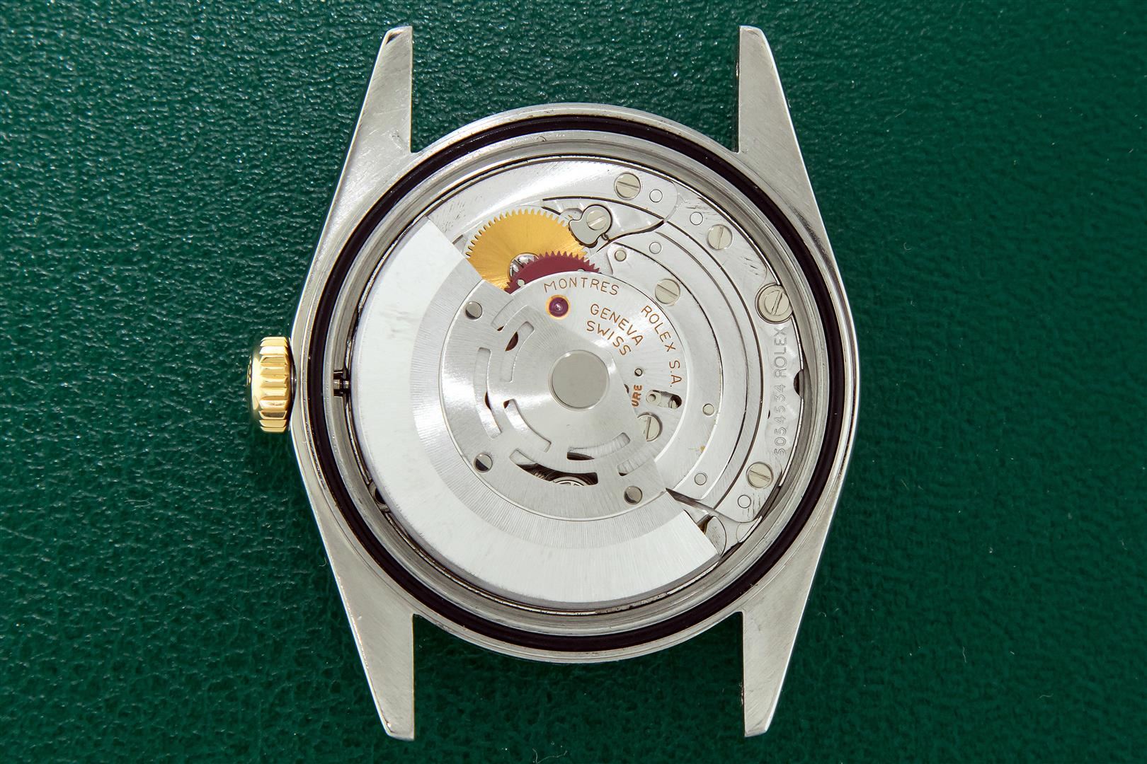 One Mens Pre Owned 18K Yellow Gold & Stainless Steel Two Tone Rolex Oyster Perpetual Datejust Polished, Serviced & Electronically Tested, Rolex 18K Yellow Gold & Stainless Steel Case: 36mm, Rolex Original Bezel: 18K Yellow Gold Fluted Bezel, Custom Crysta