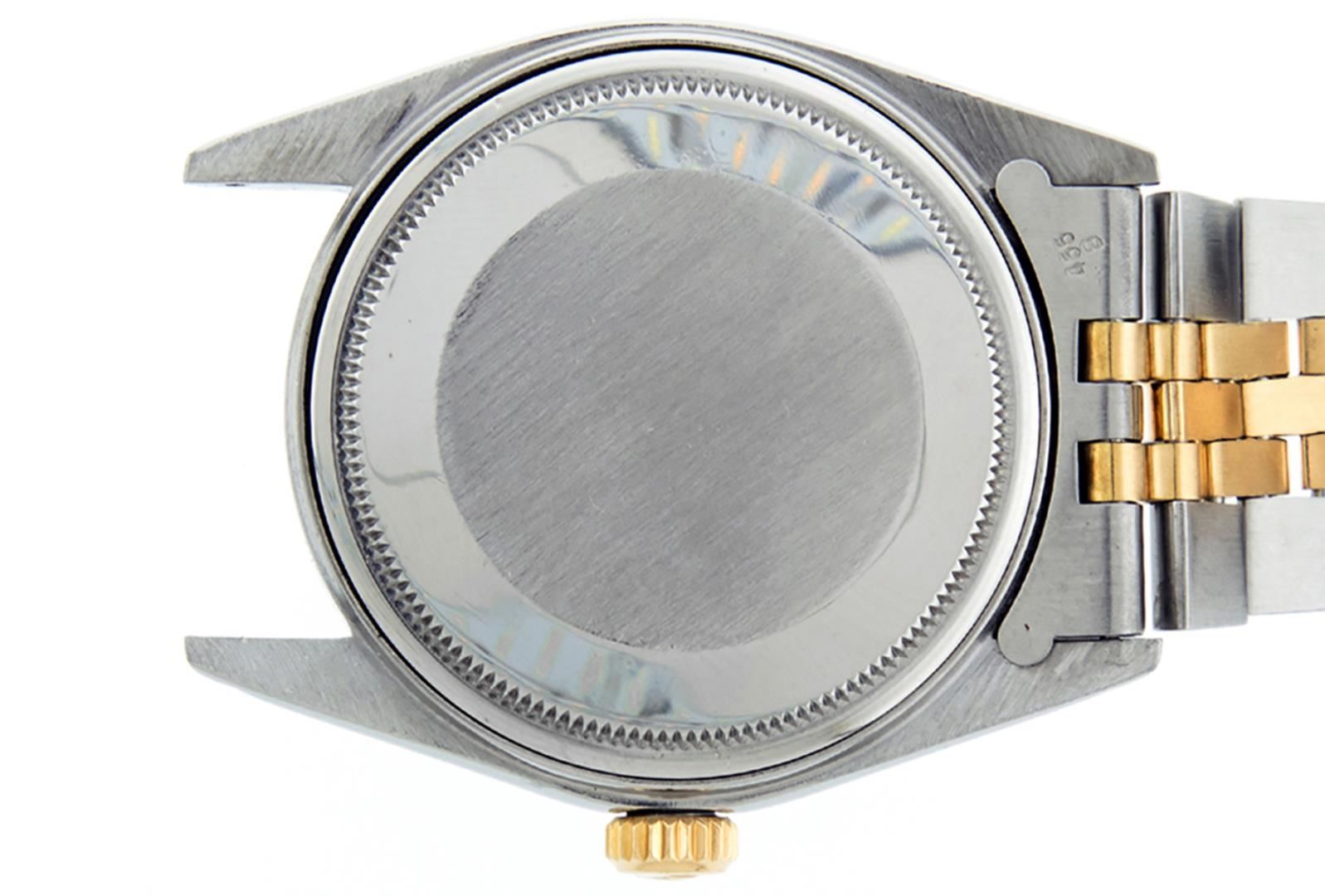 One Mens Pre Owned Two Tone Yellow Gold And Stainless Steel Rolex Datejust Polished, Serviced And Electronically Tested, Rolex Yellow Gold And Stainless Steel Case: 36mm, Rolex Yellow Gold Crown, Rolex Bezel: Yellow Gold Fluted Bezel. Custom Crystal: New