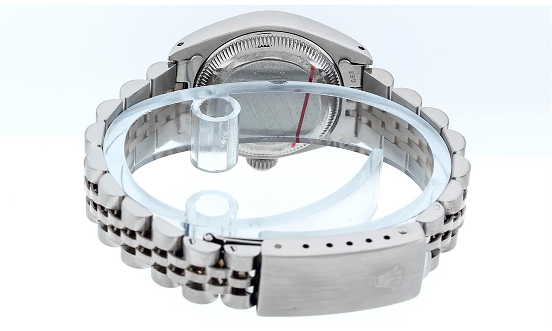 One Womens Pre Owned Midsize Stainless Steel Rolex Datejust Polished, Serviced & Electronically Tested, Rolex Stainless Steel Case Case: 31mm, Rolex Stainless Steel Crown, Rolex Bezel: White Gold Fluted Bezel, Crystal: Sapphire Cyclops Lens. Hands: Solid Hands. Rolex Movement: Automatic Quickset Winding Movement. Rolex Dial: Cream Arabic Dial, Date Window: 3 O'Clock Position Date Display, Quickset, Model: Midsize Datejust. Condition: G-6 Extra Fine. Rolex Bracelet: Stainless Steel Jubilee Band. Bright Polish. 6.0 Inch Length, Adjustable. Standard Clasp, With Rolex Logo. This Watch Has Been Serviced Time Tested And Is In Excellent Condition It Is Free Of All Scratches And Dents.