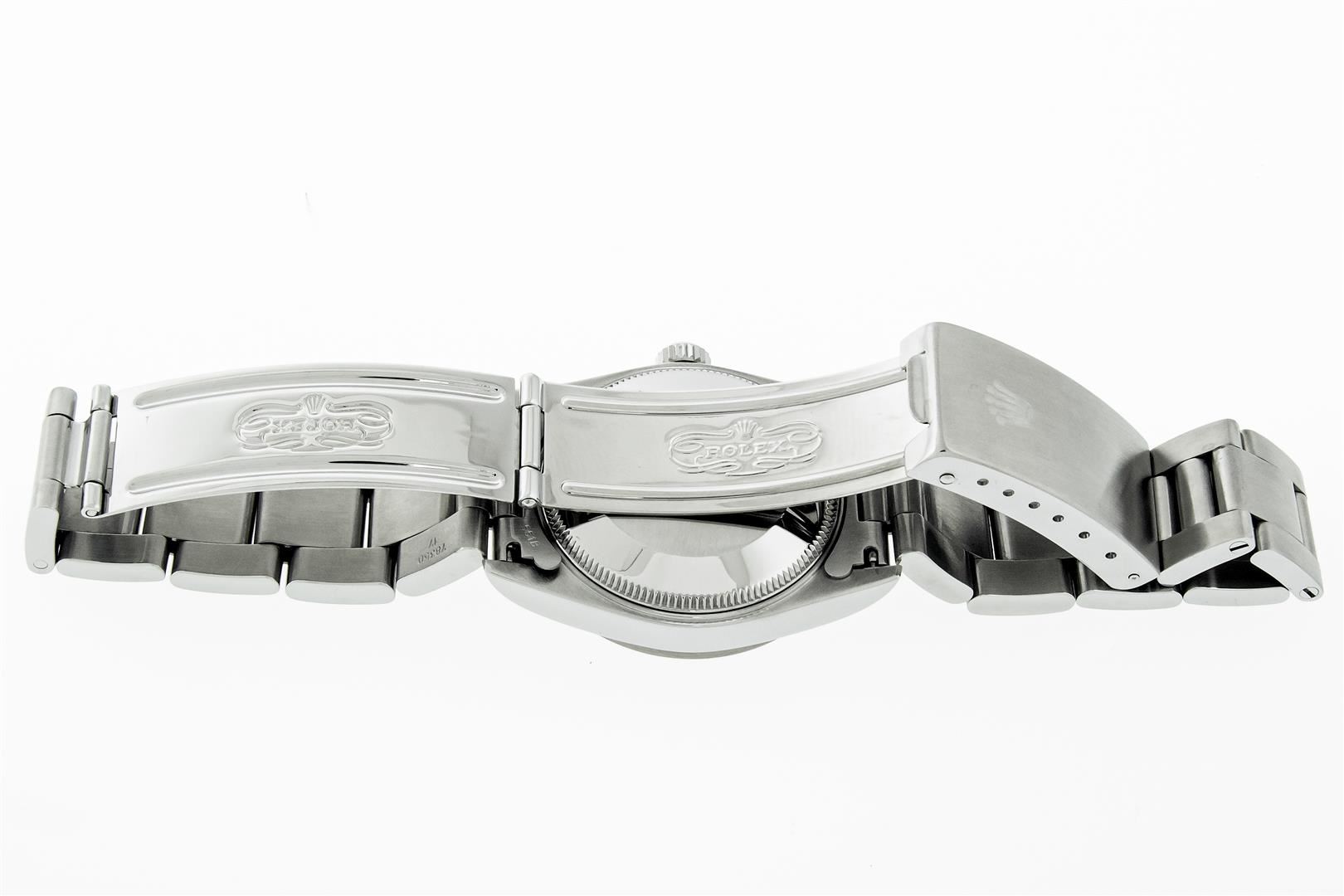 One Women's Midsize Stainless Steel Rolex Datejust Polished, Serviced & Electronically Tested, Rolex Stainless Steel case: 31mm, Rolex Stainless Steel Crown, Bezel: 18K White Gold Fluted Bezel, Custom Crystal: New Sapphire with Magnified Date Window. Custom Hands: New Luminescent Hands. Rolex Movement: Automatic Winding Movement Caliber 2235. Custom Dial: Black with Index Hour Markers, Date Window: 3 O'Clock Position Date Display, Quickset, Model: Midsize Datejust. Condition: G-6 Extra Fine. Rolex Bracelet: Stainless Steel Oyster Band. Bright Polish. 6.0 Inch Length, Adjustable. Standard Clasp, with Rolex Logo. This Pre Owned Watch Has Been Serviced Time Tested And Is In Excellent Condition It Is Free Of All Scratches And Dents.