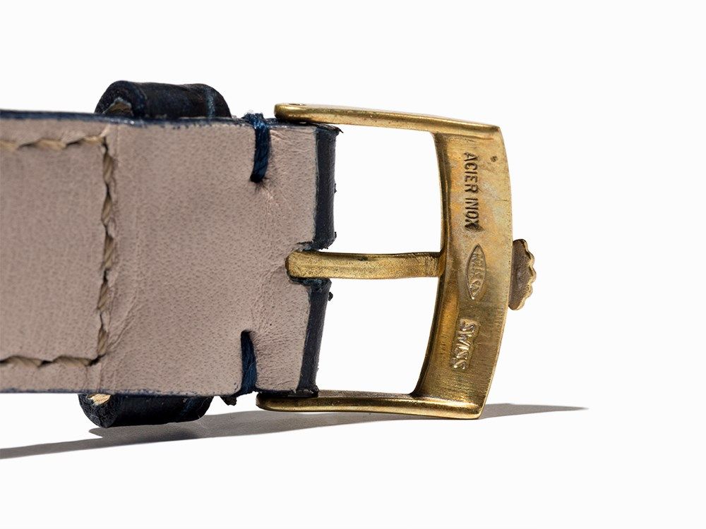 The watch case measures 34 mm in diameter and 11 mm in height. The strap is 20 cm long. The watch weighs 55 grams. The timepiece is in very good condition with minor traces of wear. During in house testing the watch was fully functional. Long-term precision and regularity cannot be guaranteed.