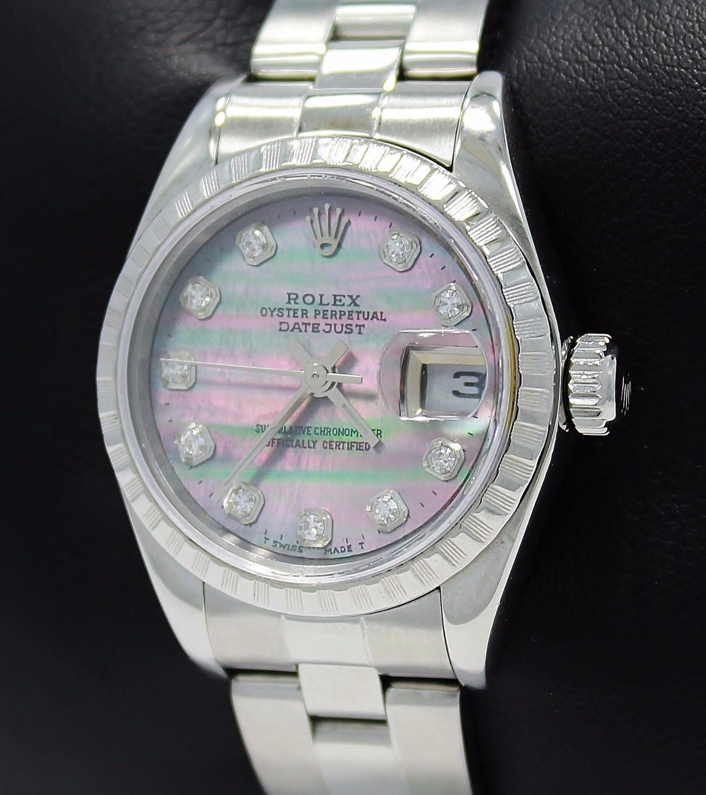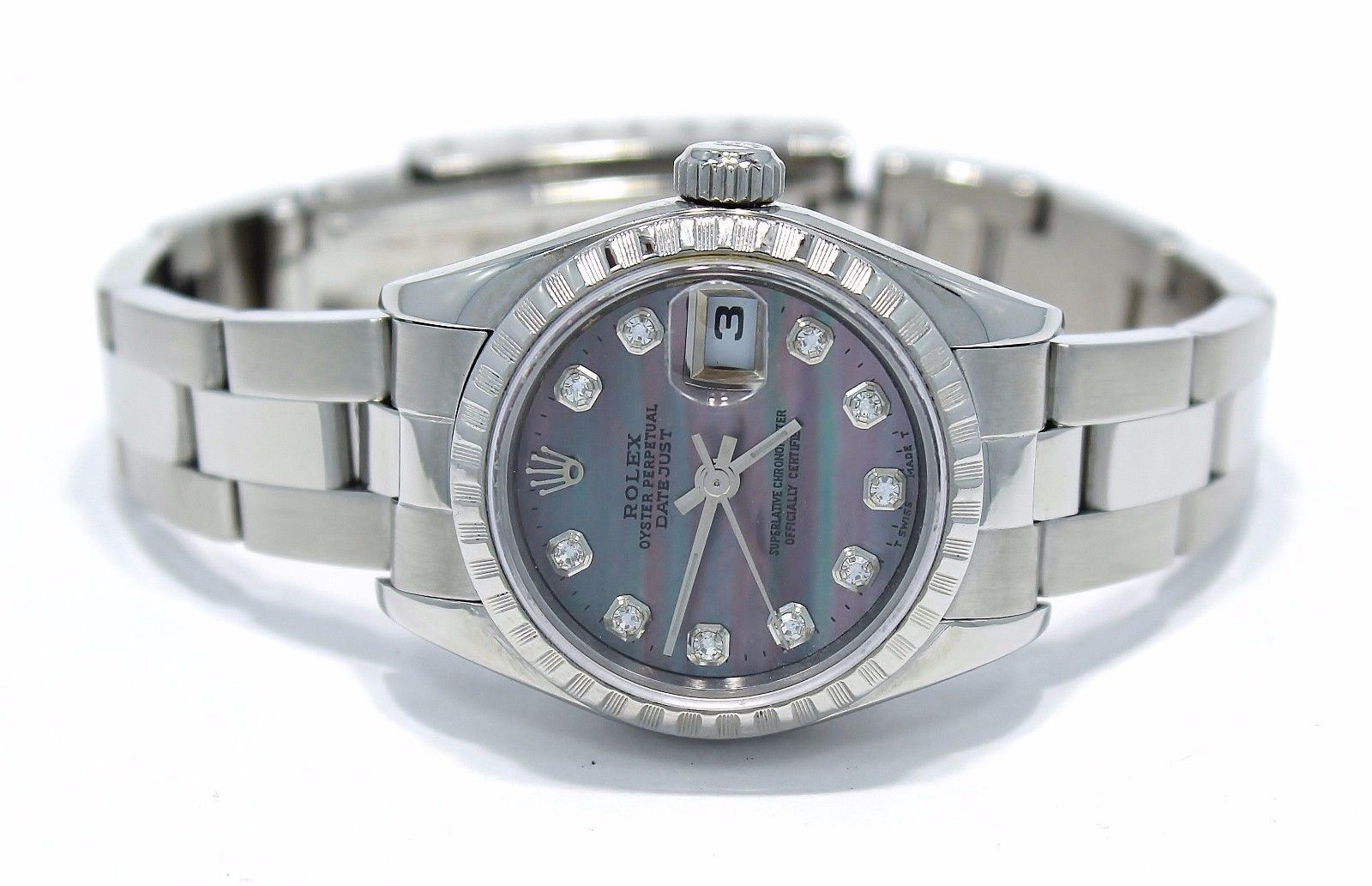 Style: Rolex Datejust 79240 Diamond Tahitian MOP Dial Oyster Date Ladies Watch