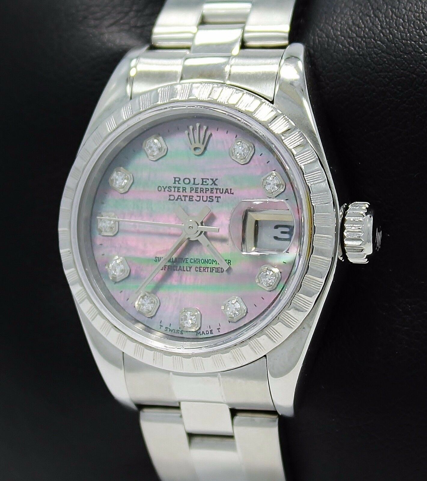 Description: Rolex Datejust 79240 Diamond Tahitian MOP Dial Oyster Date Ladies Watch