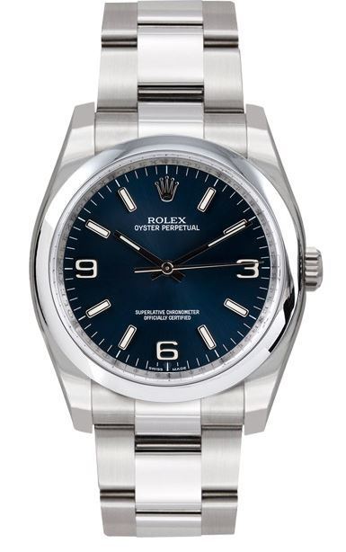 Model: 116000-BLAO - CASE = [Material:Stainless Steel], [Case Diameter:36], [Bezel:Fixed Domed Stainless Steel], [Case Back:Solid], [Water Resistant:100 Meters - 330 Feet], [Crystal:Sapphire], DIAL = [Color:Blue Luminous Arabic and Stick], MOVEMENT = [Type:31 Jewels Automatic Self Winding], BAND = [Clasp:Deployant], [Type:Stainless Steel Oyster], (Usually ships in 1 to 2 weeks.)