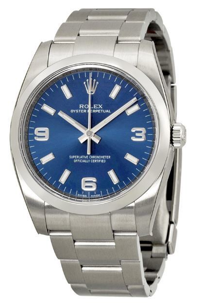 Model: M114200-0014 - CASE = [Material:Stainless Steel], [Case Diameter:34], [Bezel:Fixed], [Case Back:Solid], [Water Resistant:100 Meters - 330 Feet], [Crystal:Scratch Resistant Sapphire], DIAL = [Color:Blue], MOVEMENT = [Type:Automatic Self Winding], [Crown:Screw Down], BAND = [Clasp:Deployment], [Type:Stainless Steel], (In Stock - Ready to ship.)
