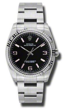 Model: 116034-BKAO - CASE = [Material:Stainless Steel], [Case Diameter:36], [Bezel:Fluted], [Water Resistant:100 Meters - 330 Feet], [Crystal:Sapphire], DIAL = [Color:Black Luminous Arabic and Stick], MOVEMENT = [Type:Automatic Self Winding], BAND = [Type:Stainless Steel Oyster], (Usually ships in 1 to 2 weeks.)