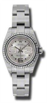 Model: 176234-SIAO - CASE = [Material:Stainless steel], [Case Diameter:26], [Bezel:Fixed 18kt White Gold], [Water Resistant:100 Meters - 330 Feet], [Crystal:Sapphire], DIAL = [Color:Silver Maxi Numeral], MOVEMENT = [Type:Automatic Self Winding], BAND = [Type:Stainless Steel], (Usually ships in 1 to 2 weeks.)