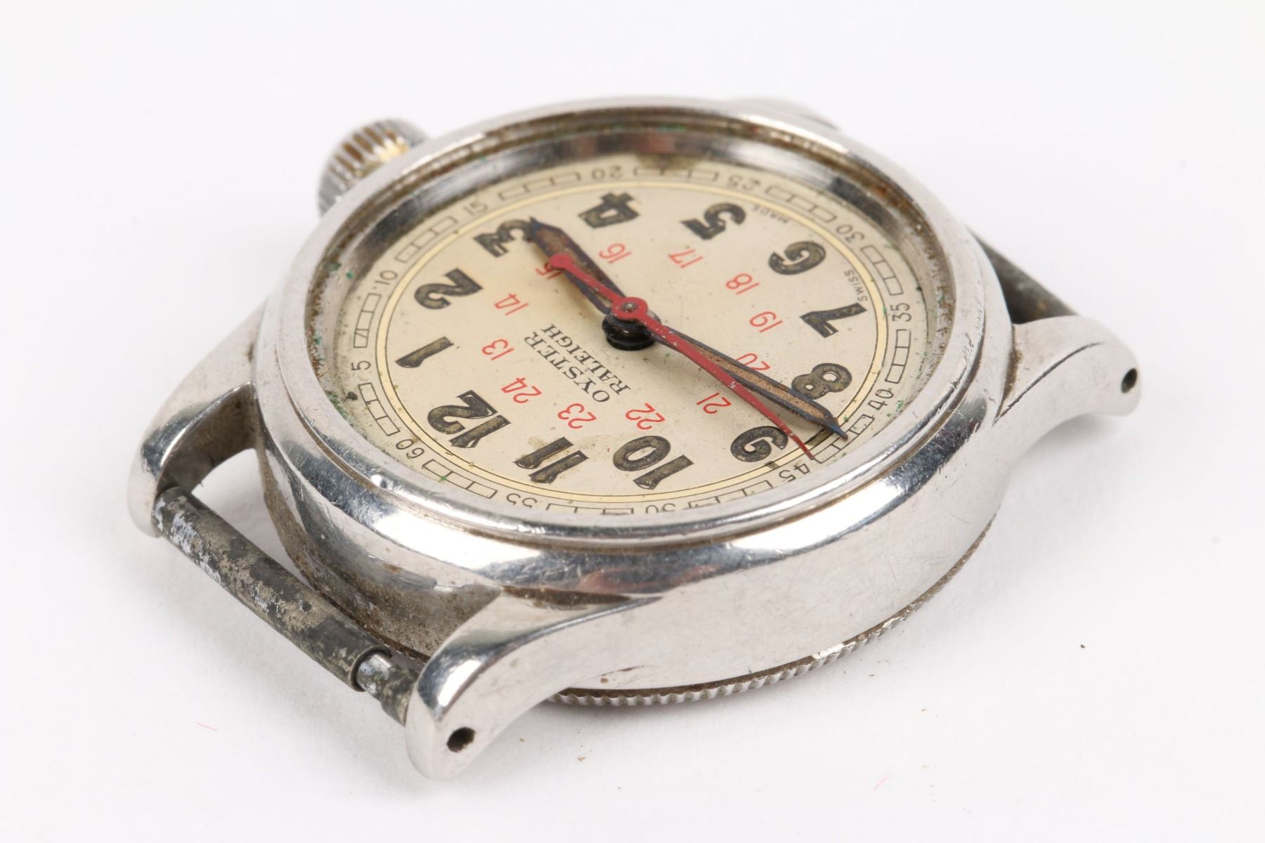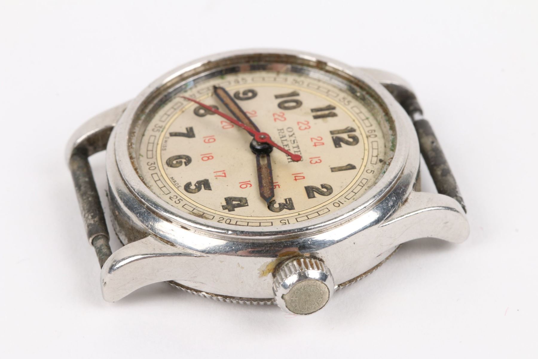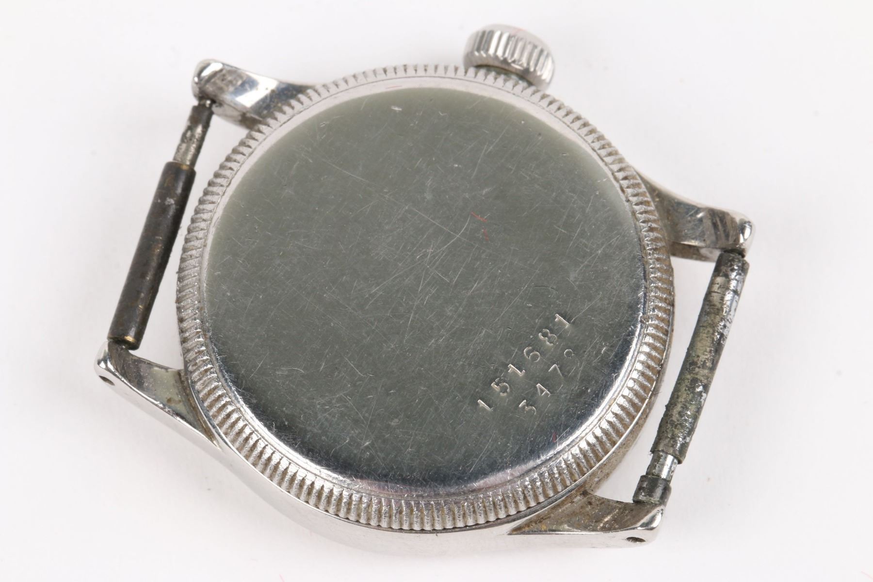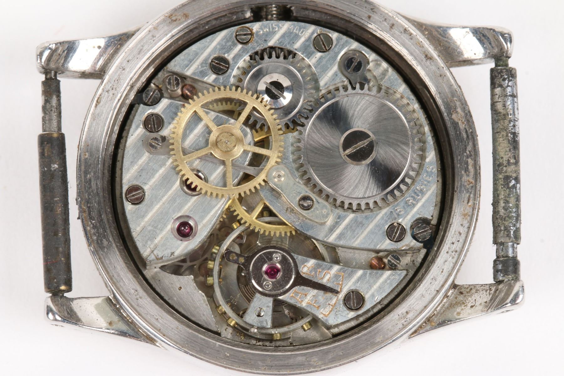 CIRCA: 1940s. CASE MATERIAL: Stainless Steel. DIAL DIAMETER: 24mm. BRACELET MATERIAL: No bracelet. MOVEMENT: Manual Wind. FEATURES: Offered as found from the Luckhardt Jeweller estate. E.D Luckhardt was a jeweller from New Hamburg, Ontario active from the turn-of-the-century until the 1960's. The watch was discovered in a drawer of his jewellers bench. NOTES: No crystal. WEIGHT: 26.1g. Est. $400-600 DISCLOSURE: Watches were running at time of photography unless otherwise stated. Service history is unknown unless paperwork is provided. We cannot guarantee accuracy of any of the watches offered. "