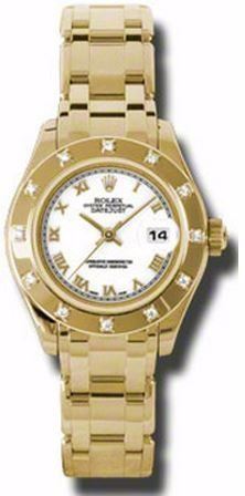 Model: 80318-WHAO - CASE = [Material:18kt Yellow Gold], [Case Diameter:29], [Bezel:Fixed Domed], [Water Resistant:100 Meters - 330 Feet], [Crystal:Sapphire],; DIAL = [Color:White Arabic],; MOVEMENT = [Type:31 Jewel Automatic Self Winding],; BAND = [Type:18kt Yellow Gold], (Usually ships in 1 to 2 weeks.)