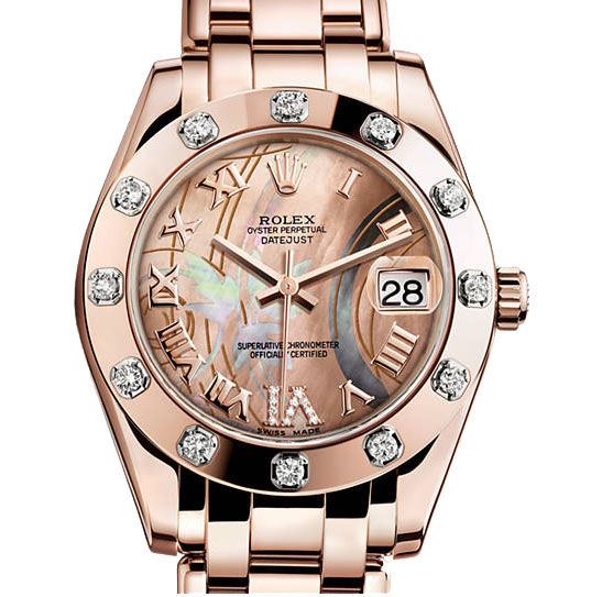 Model: 81315-GDRP - Case,; MATERIAL18KT ROSE GOLD = [Case Diameter34], [Water Resistant100 Meters - 330 Feet], [CrystalScratch Resistant Sapphire], Dial,; COLORGOLDUST DREAM WITH ROSE GOLD HANDS AND ROMAN NUMERALS = Movement,; TYPEAUTOMATIC SELF WINDING = [CrownScrew Down], Band,; CLASPFOLDING = [Type18kt Rose Gold], (Usually ships in 1 to 2 business days.)