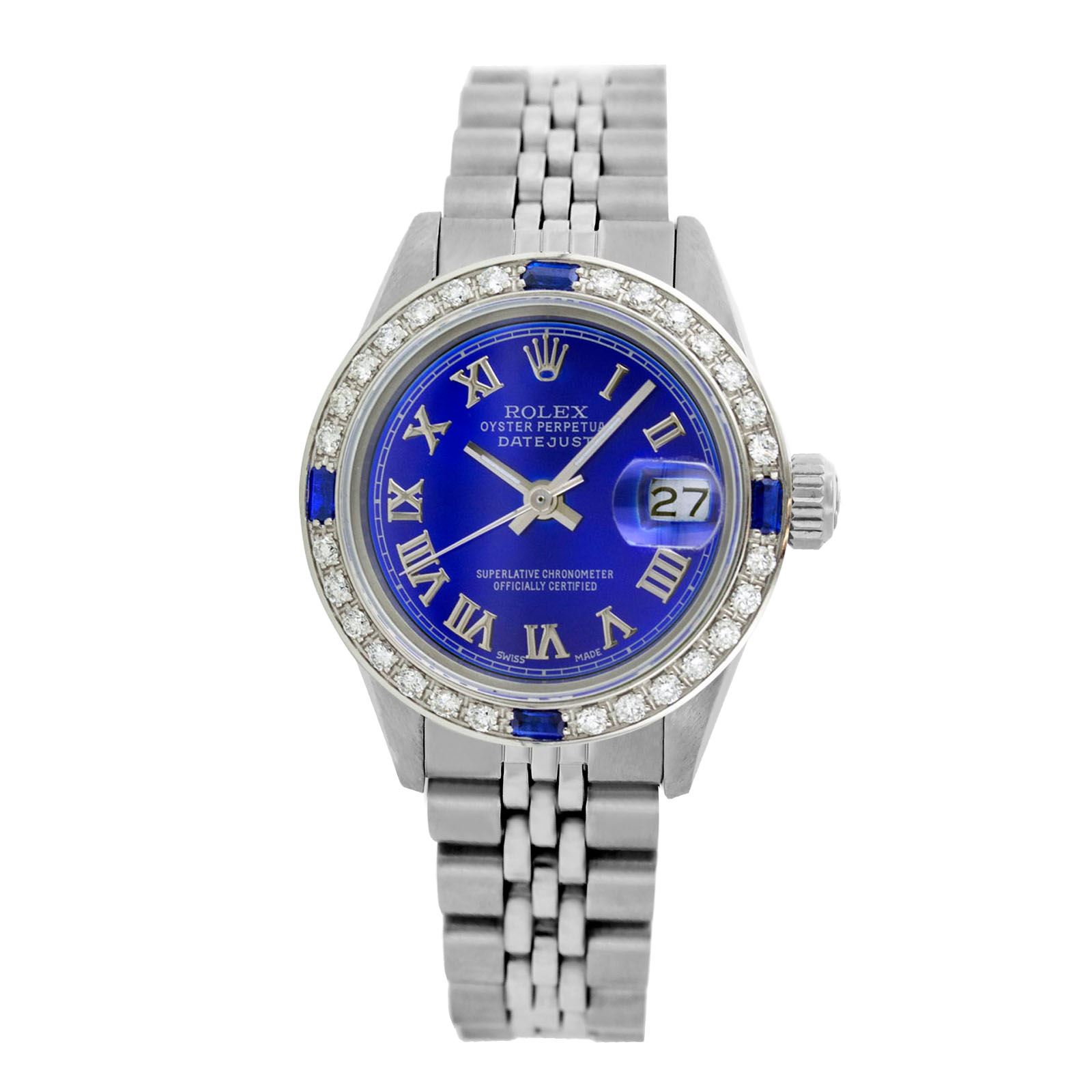 Bezel Type: 18K White Gold with Genuine Diamonds and 4 Sapphire Baguette
