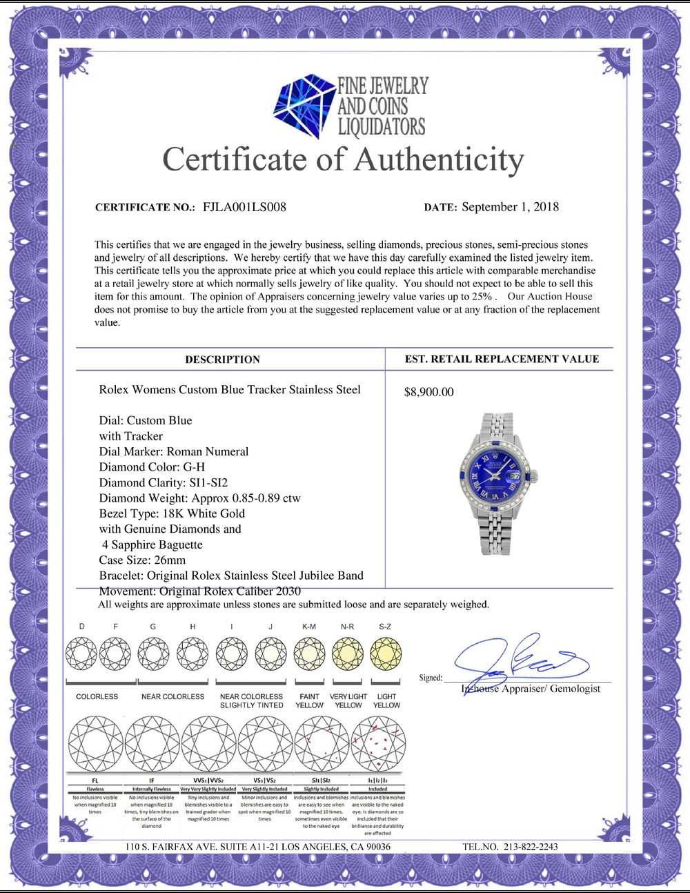 WORLD JEWELRY AUCTION believes to the best of its knowledge that the information presented in any listing has come from reliable sources. Such information is presented solely for the convenience of the Purchaser. WJA makes no warranties of any kind related to the information presented in any listing. WJA further makes no warranties, either express or implied, relating to the value, marketability or condition of the lot described in any listing. Prospective bidders should investigate a lot thoroughly before bidding. By bidding the Bidder acknowledges that Bidder has investigated the lot to his or her satisfaction, or, that Bidder has chosen not to do so, and agrees to accept the lot being bid on with no objections after the sale closes. If you are uncertain please contact us with your questions prior to bidding. If you are still uncertain after we reply, please refrain from bidding. Photos other graphic material contained in any listing of generic or duplicate lots may be stock presentations and not necessarily of the specific lot.