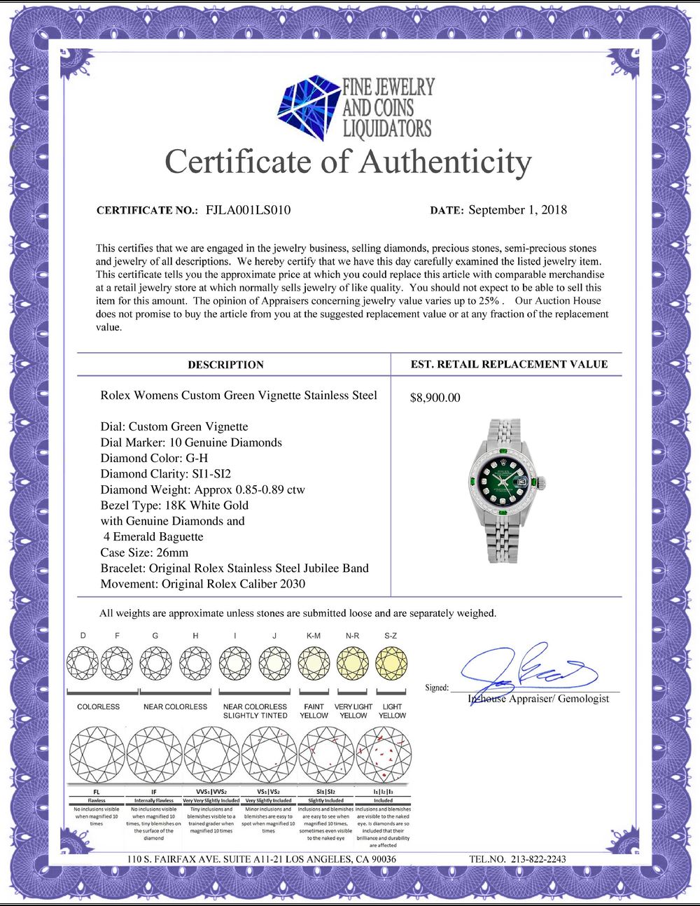 All Gia and EGL Diamonds are subject to availability due to consignors’ terms with us.