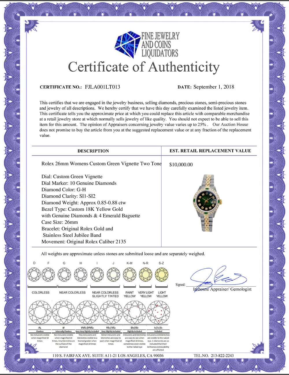 All Gia and EGL Diamonds are subject to availability due to consignors’ terms with us.