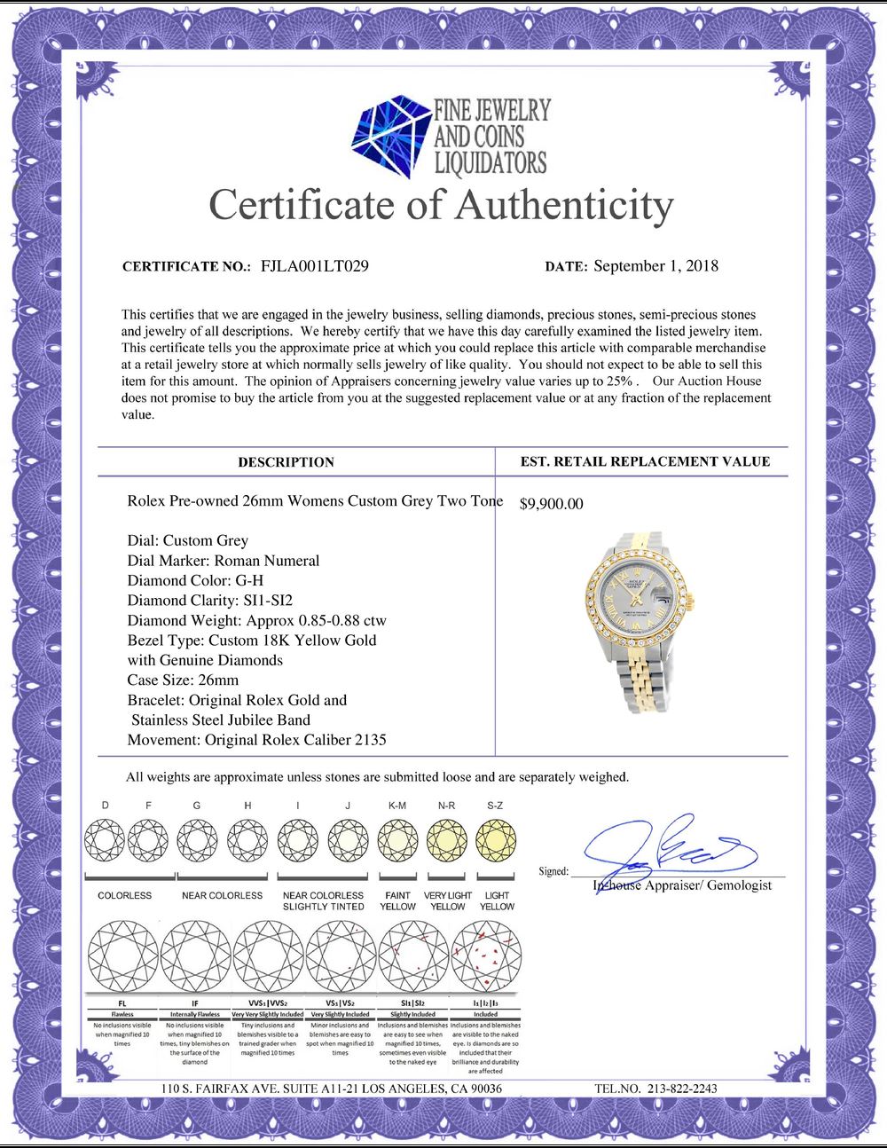 WORLD JEWELRY AUCTION believes to the best of its knowledge that the information presented in any listing has come from reliable sources. Such information is presented solely for the convenience of the Purchaser. WJA makes no warranties of any kind related to the information presented in any listing. WJA further makes no warranties, either express or implied, relating to the value, marketability or condition of the lot described in any listing. Prospective bidders should investigate a lot thoroughly before bidding. By bidding the Bidder acknowledges that Bidder has investigated the lot to his or her satisfaction, or, that Bidder has chosen not to do so, and agrees to accept the lot being bid on with no objections after the sale closes. If you are uncertain please contact us with your questions prior to bidding. If you are still uncertain after we reply, please refrain from bidding. Photos other graphic material contained in any listing of generic or duplicate lots may be stock presentations and not necessarily of the specific lot.
