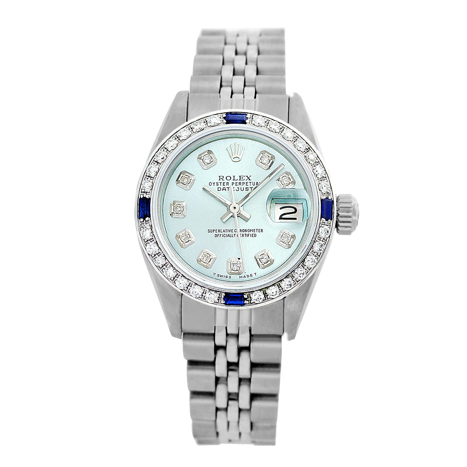 Bezel Type: 18K White Gold with Genuine Diamonds and 4 Sapphire Baguette