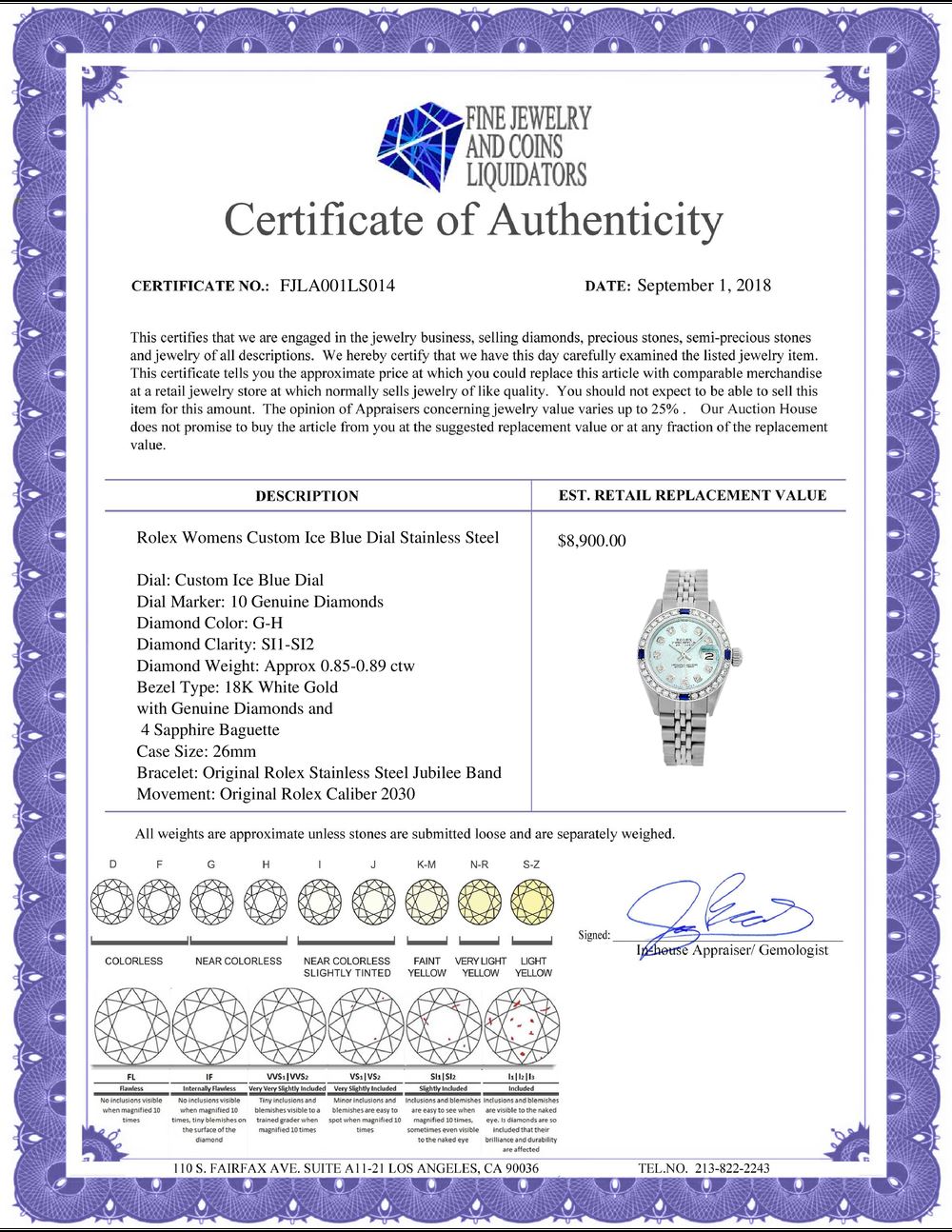 Bezel Type: 18K White Gold with Genuine Diamonds and 4 Sapphire Baguette