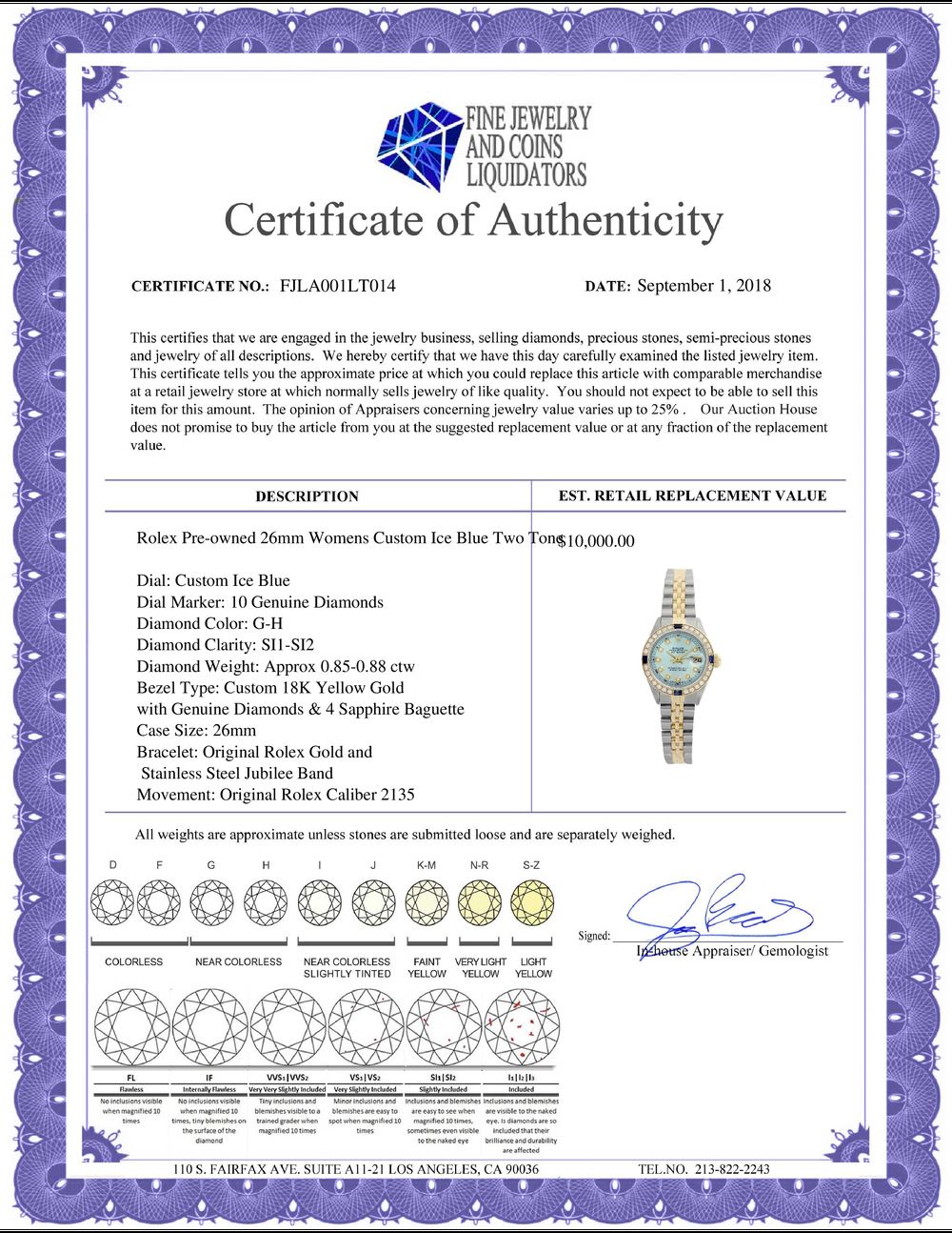 All Gia and EGL Diamonds are subject to availability due to consignors’ terms with us.