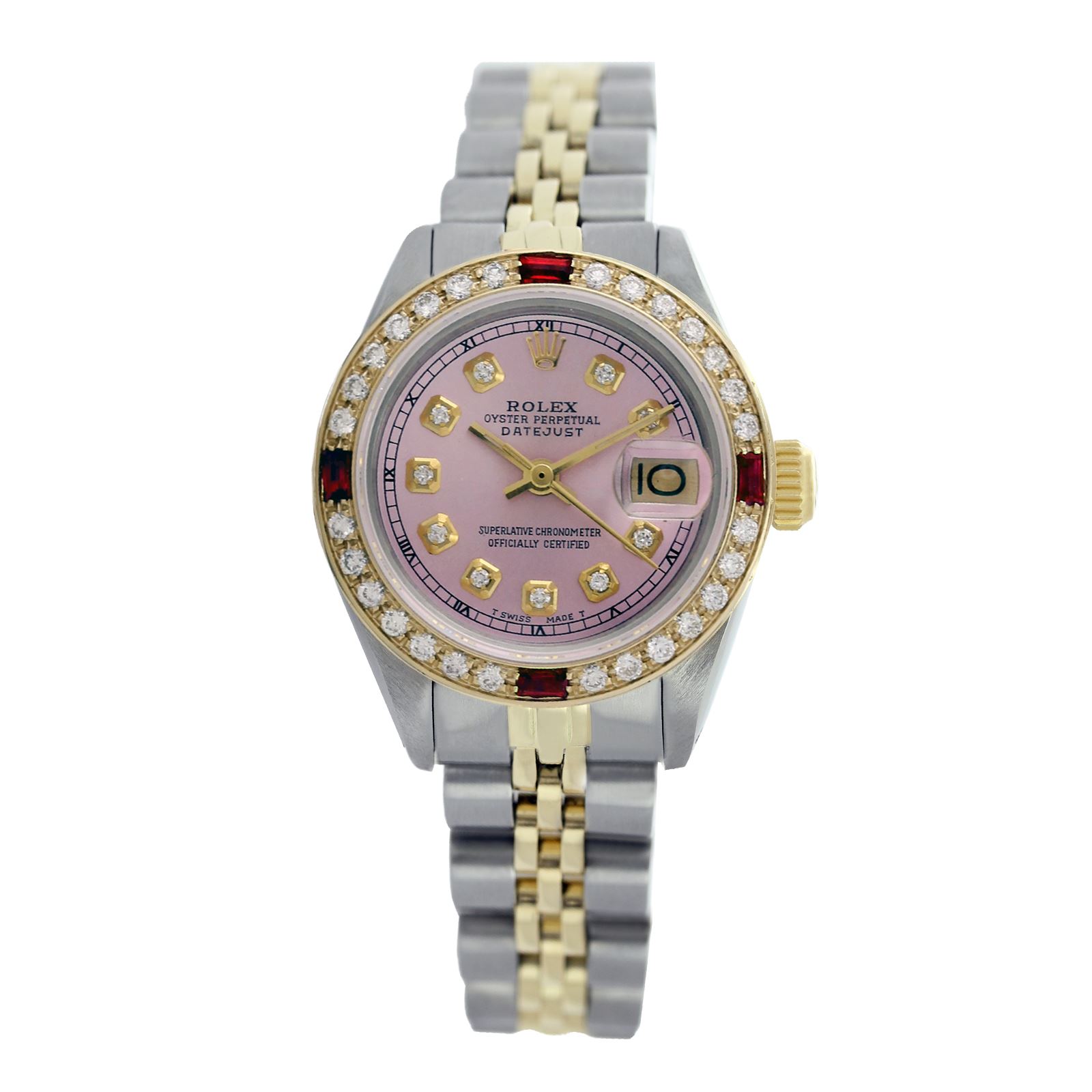 Bezel Type: Custom 18K Yellow Gold with Genuine Diamonds & 4 Ruby Baguette
