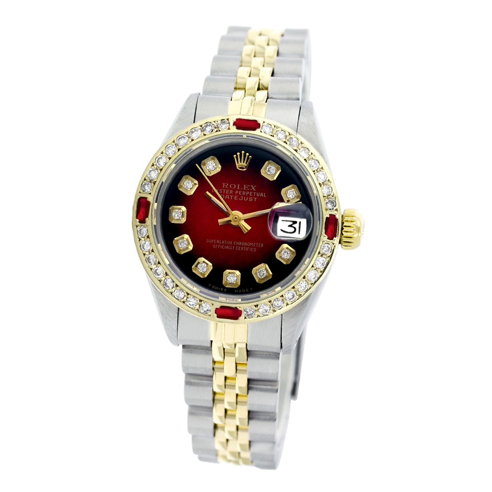 Bezel Type: Custom 18K Yellow Gold with Genuine Diamonds & 4 Ruby Baguette