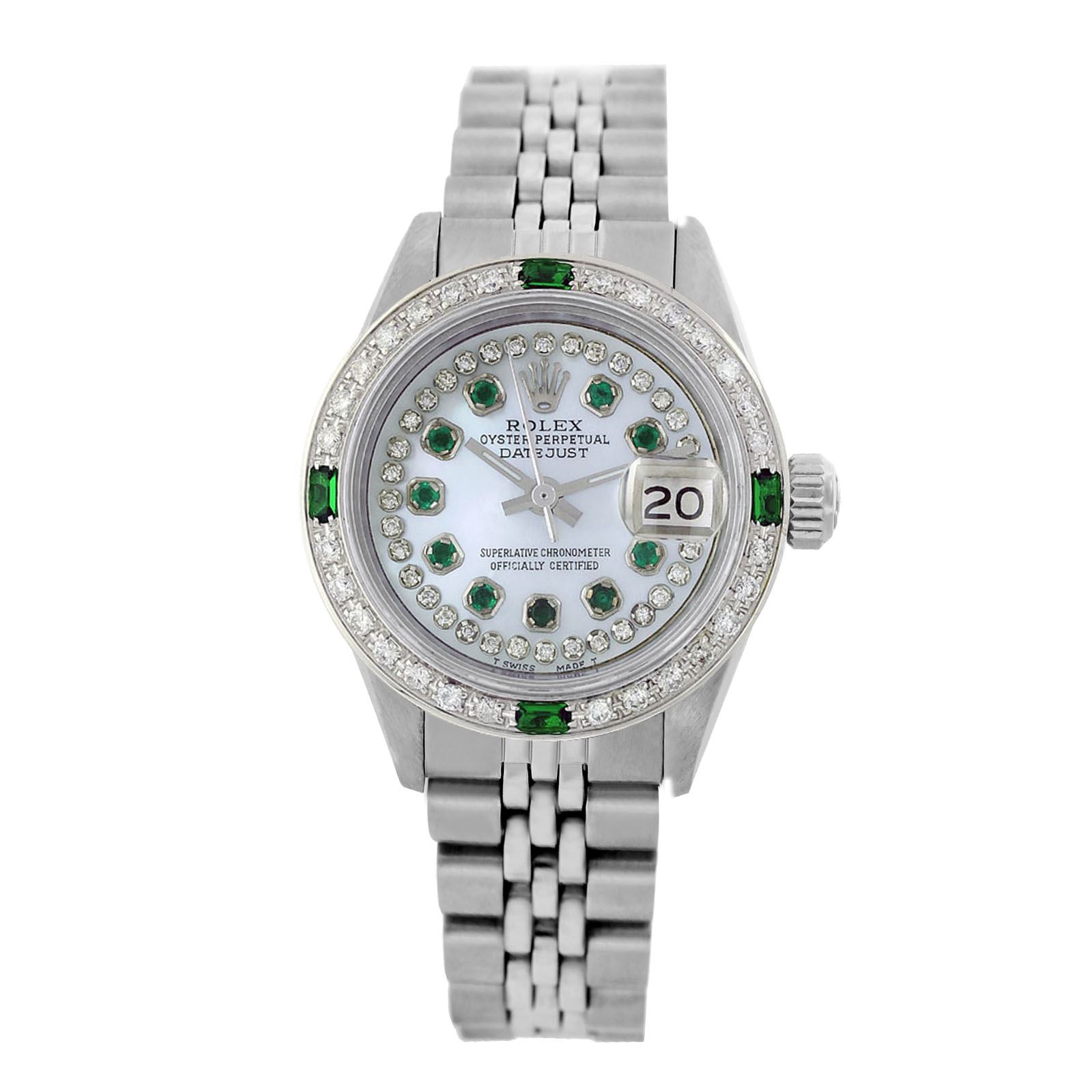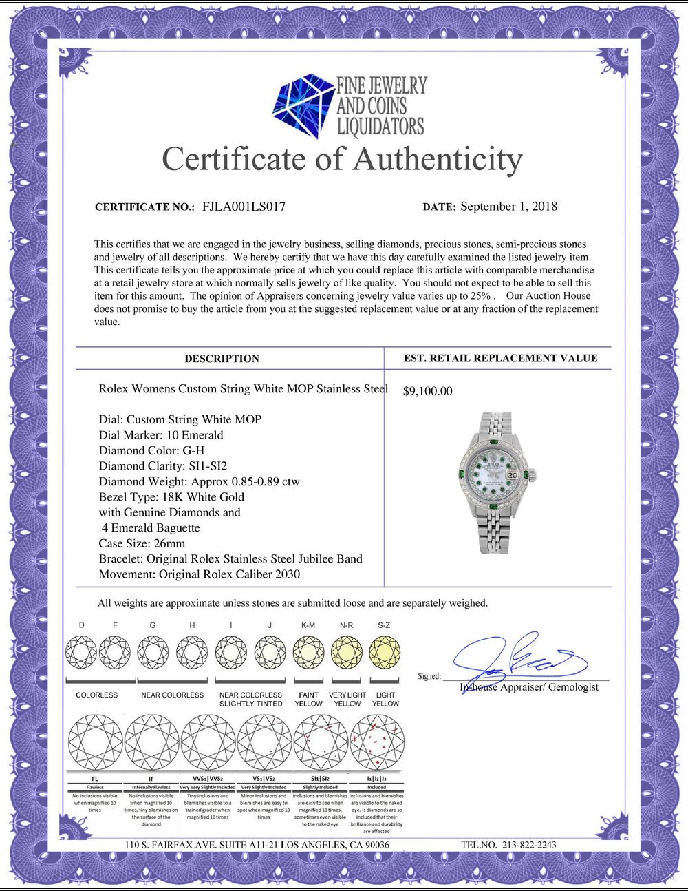 Bezel Type: 18K White Gold with Genuine Diamonds and 4 Emerald Baguette