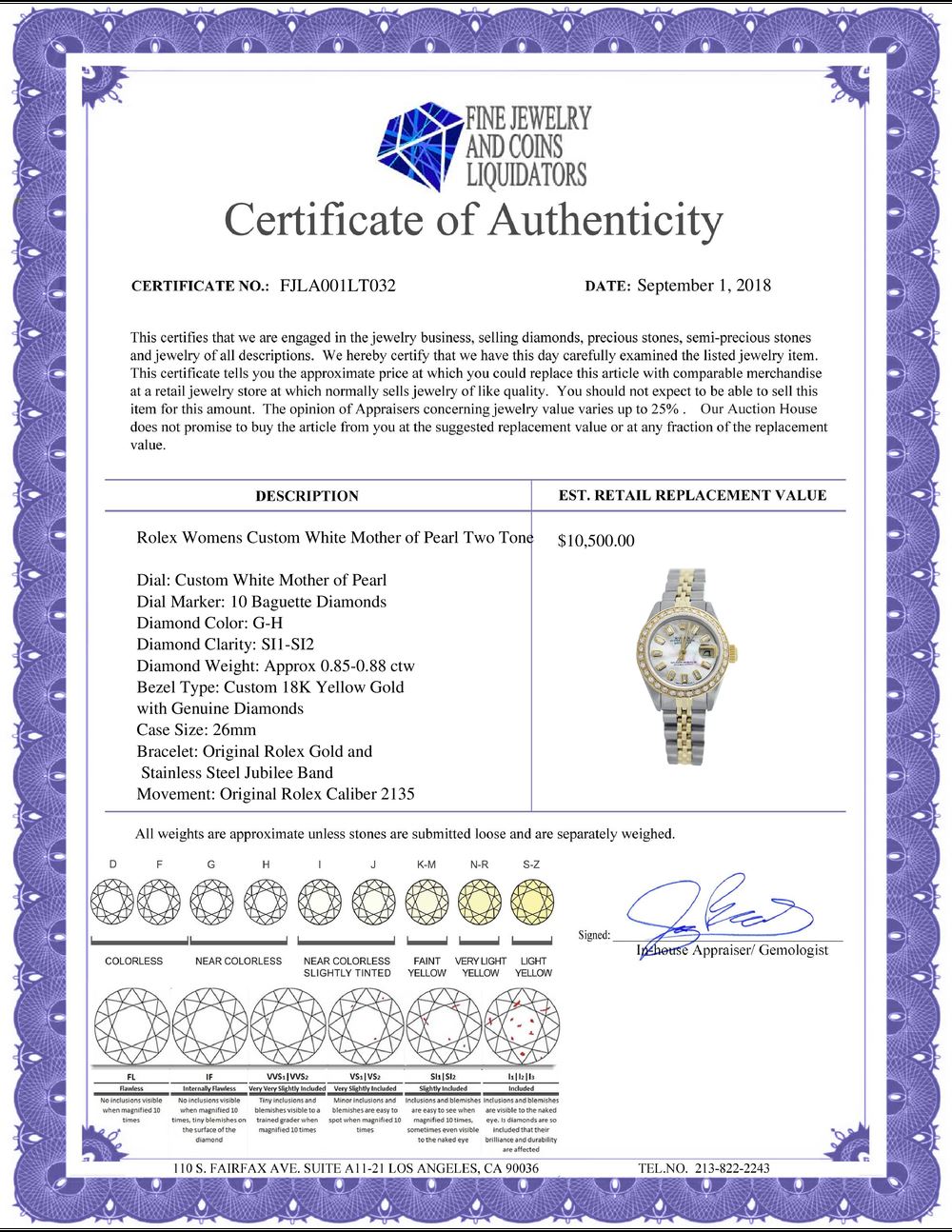 WORLD JEWELRY AUCTION believes to the best of its knowledge that the information presented in any listing has come from reliable sources. Such information is presented solely for the convenience of the Purchaser. WJA makes no warranties of any kind related to the information presented in any listing. WJA further makes no warranties, either express or implied, relating to the value, marketability or condition of the lot described in any listing. Prospective bidders should investigate a lot thoroughly before bidding. By bidding the Bidder acknowledges that Bidder has investigated the lot to his or her satisfaction, or, that Bidder has chosen not to do so, and agrees to accept the lot being bid on with no objections after the sale closes. If you are uncertain please contact us with your questions prior to bidding. If you are still uncertain after we reply, please refrain from bidding. Photos other graphic material contained in any listing of generic or duplicate lots may be stock presentations and not necessarily of the specific lot.