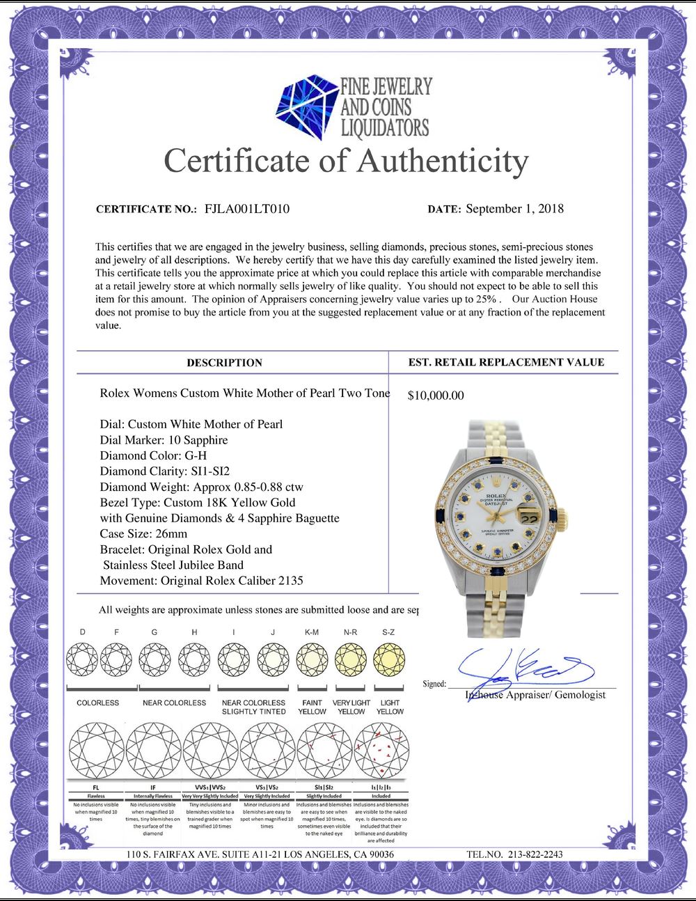 All Gia and EGL Diamonds are subject to availability due to consignors’ terms with us.