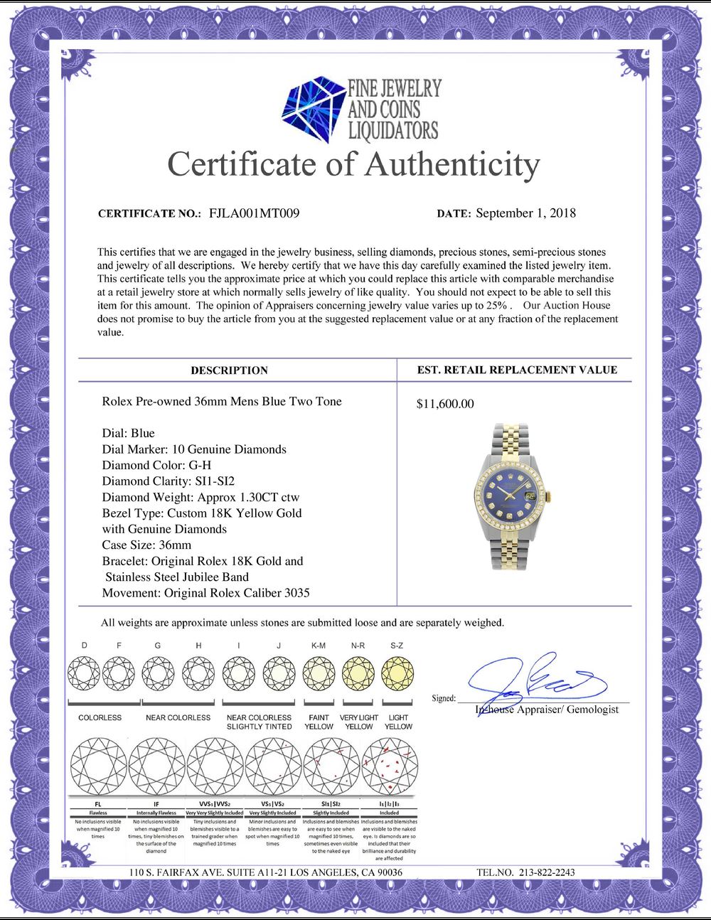WORLD JEWELRY AUCTION believes to the best of its knowledge that the information presented in any listing has come from reliable sources. Such information is presented solely for the convenience of the Purchaser. WJA makes no warranties of any kind related to the information presented in any listing. WJA further makes no warranties, either express or implied, relating to the value, marketability or condition of the lot described in any listing. Prospective bidders should investigate a lot thoroughly before bidding. By bidding the Bidder acknowledges that Bidder has investigated the lot to his or her satisfaction, or, that Bidder has chosen not to do so, and agrees to accept the lot being bid on with no objections after the sale closes. If you are uncertain please contact us with your questions prior to bidding. If you are still uncertain after we reply, please refrain from bidding. Photos other graphic material contained in any listing of generic or duplicate lots may be stock presentations and not necessarily of the specific lot.
