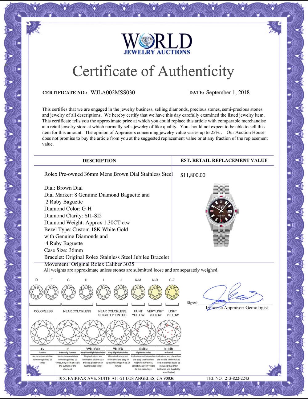Dial Marker: 8 Genuine Diamond Baguette and 2 Ruby Baguette